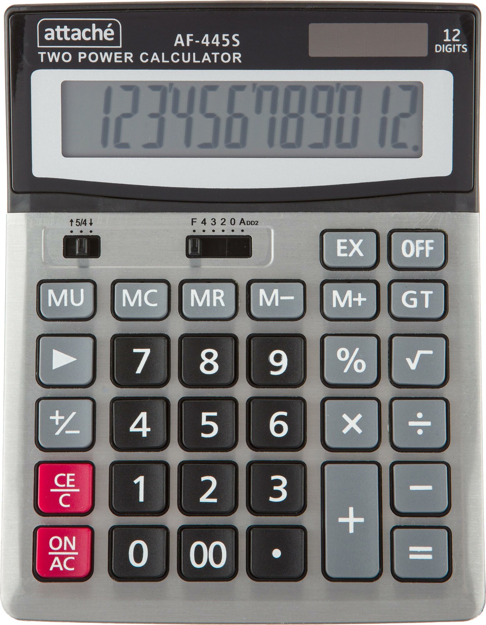 Калькулятор Attache Настольный, полноразмерный, AF-445S, 12 разрядов, двойное питание, серебристый информация: