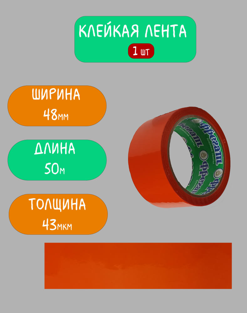 Клейкая лента (скотч) оранжевый, 1 шт, 48мм х 50м, 43мкм Фрегат информация: