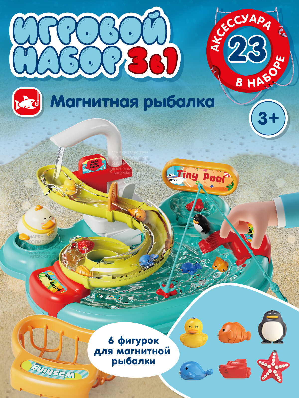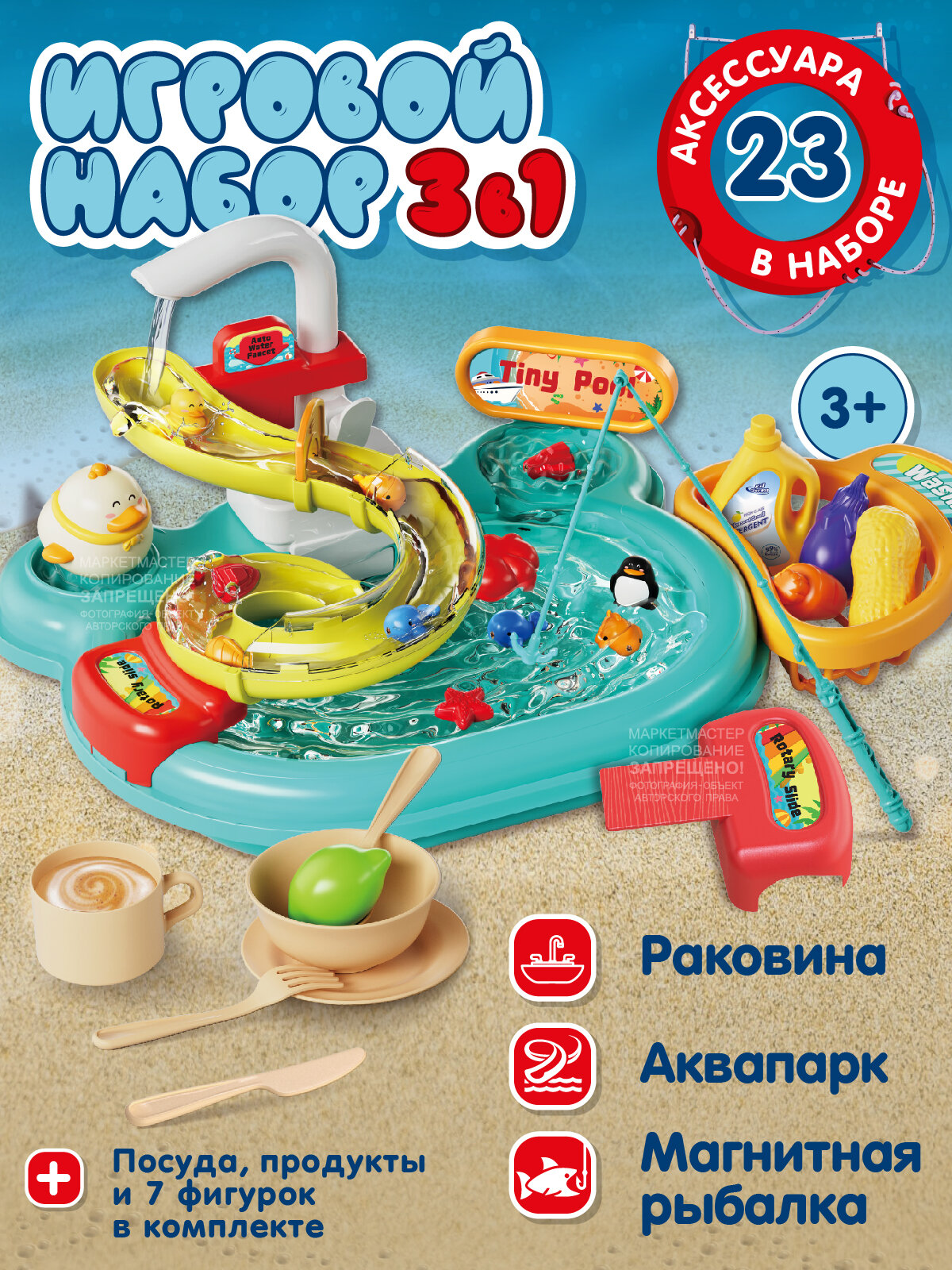 Развивающий игровой центр 2в1, рыбалка/аквапарк, игровая кухня/раковина, для мальчиков/девочек, JB0211622 информация: