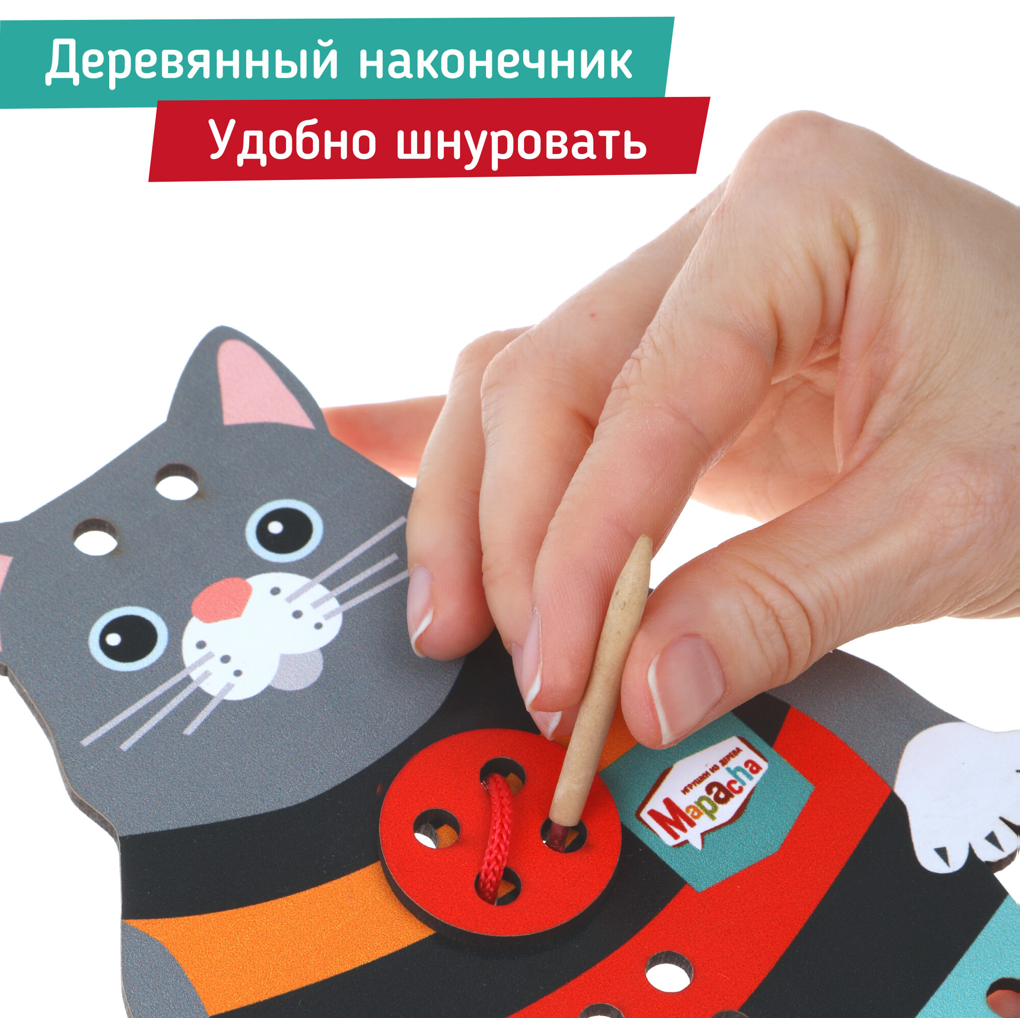 Игрушка Mapacha "Животные", шнуровка деревянная, 12 элементов, 3-4см