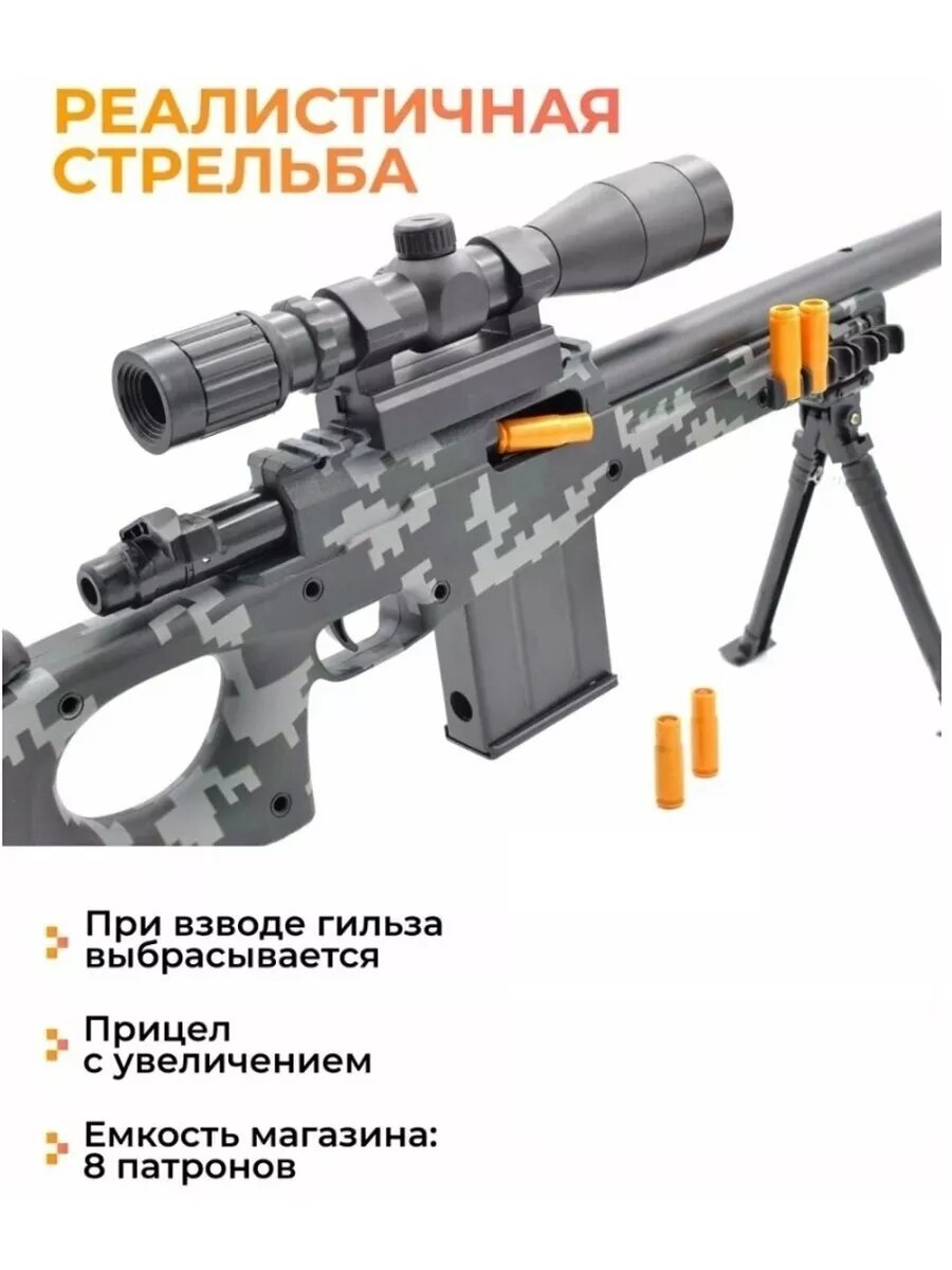 Детская снайперская винтовка вылет гильз и оптический прицел информация: