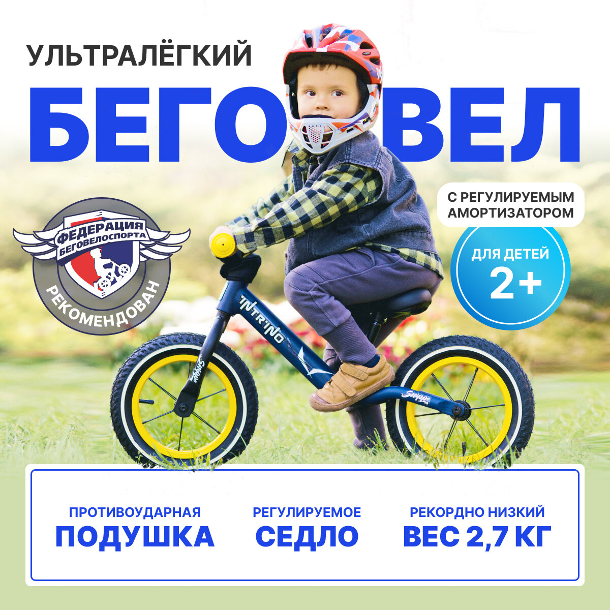 Беговел Intrino Snippo детский 2+ с амортизацией, прямой руль синий 9 600 ₽
