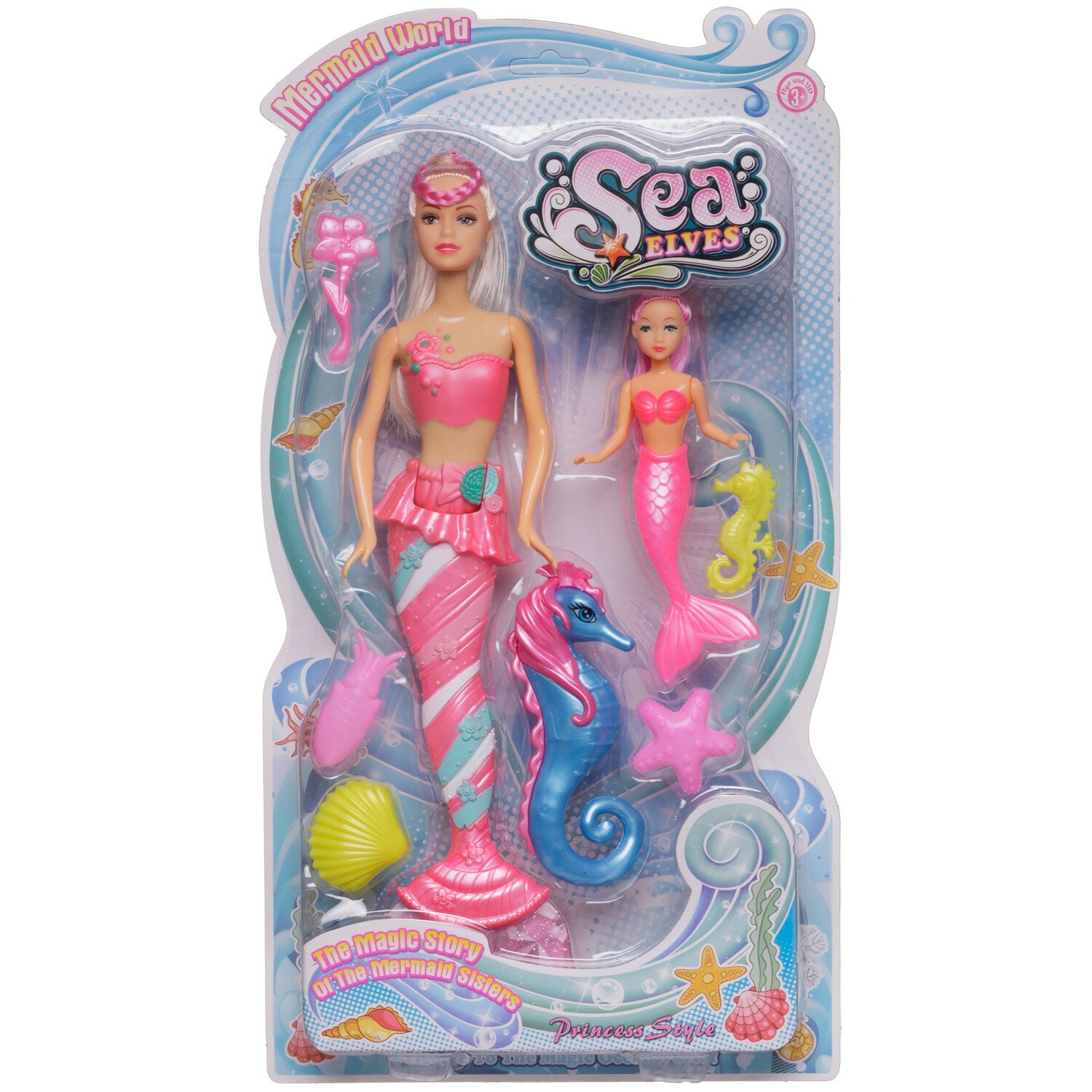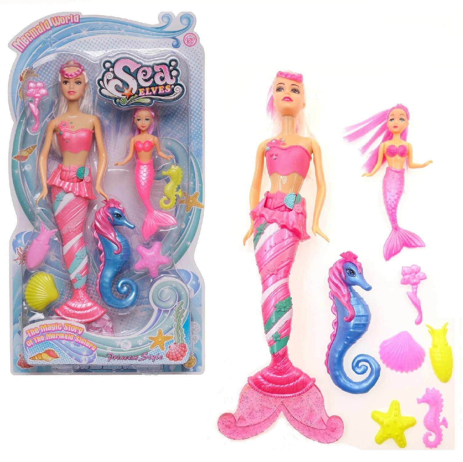 Куклы-русалочки Junfa мама и дочка, с розовыми хвостами, на блистере (WJ-34829/розовый) информация: