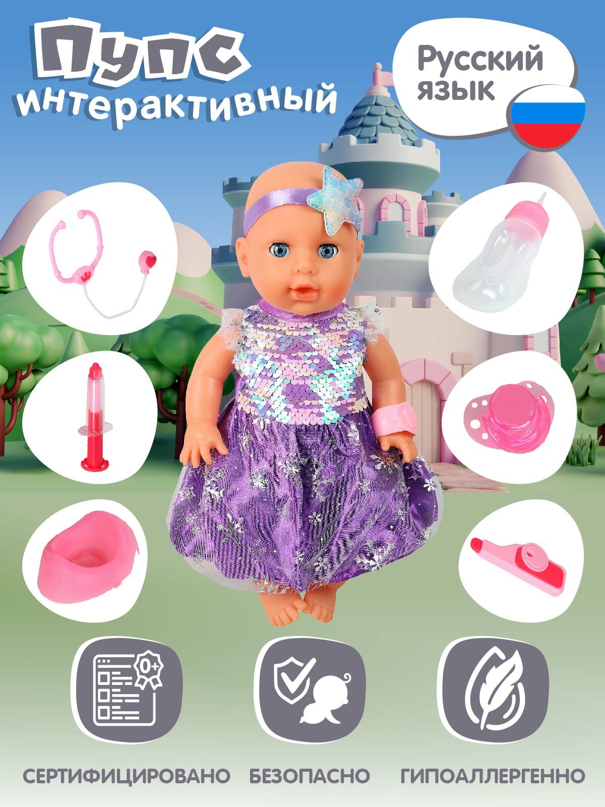 Интерактивная Кукла-Пупс с аксессуарами, плачет/смеется, говорит фразы/звуки/стихи, аксессуары врача, JB0211586 2 300 ₽