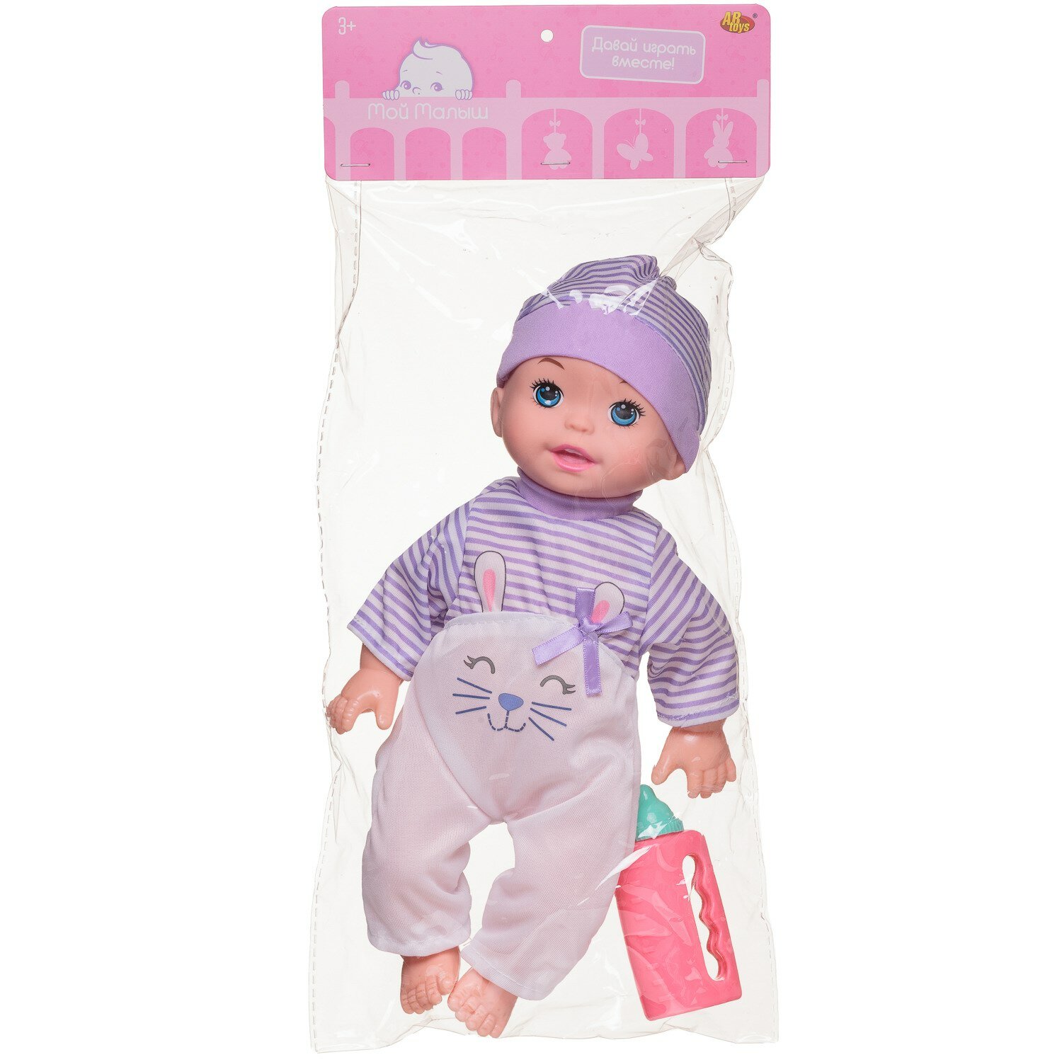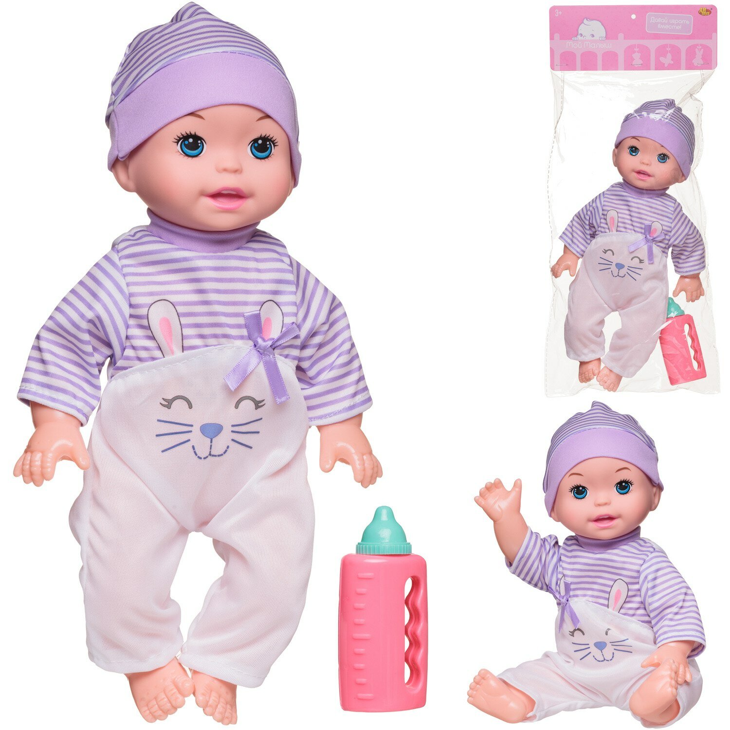 Пупс Abtoys Мой малыш 35 см озвученный в бело-сиреневом комбинезоне с бутылочкой PT-01906 информация: