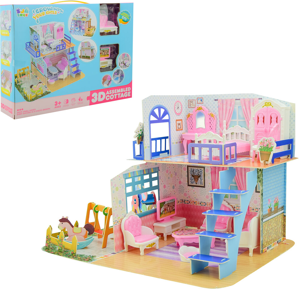 10 цен на Домик для кукол картонный, складной модель 3D с аксессуарами, 0588-20/Кукольный домик/Домик для животных