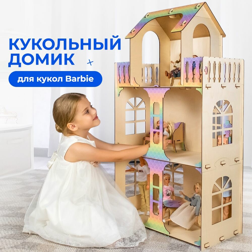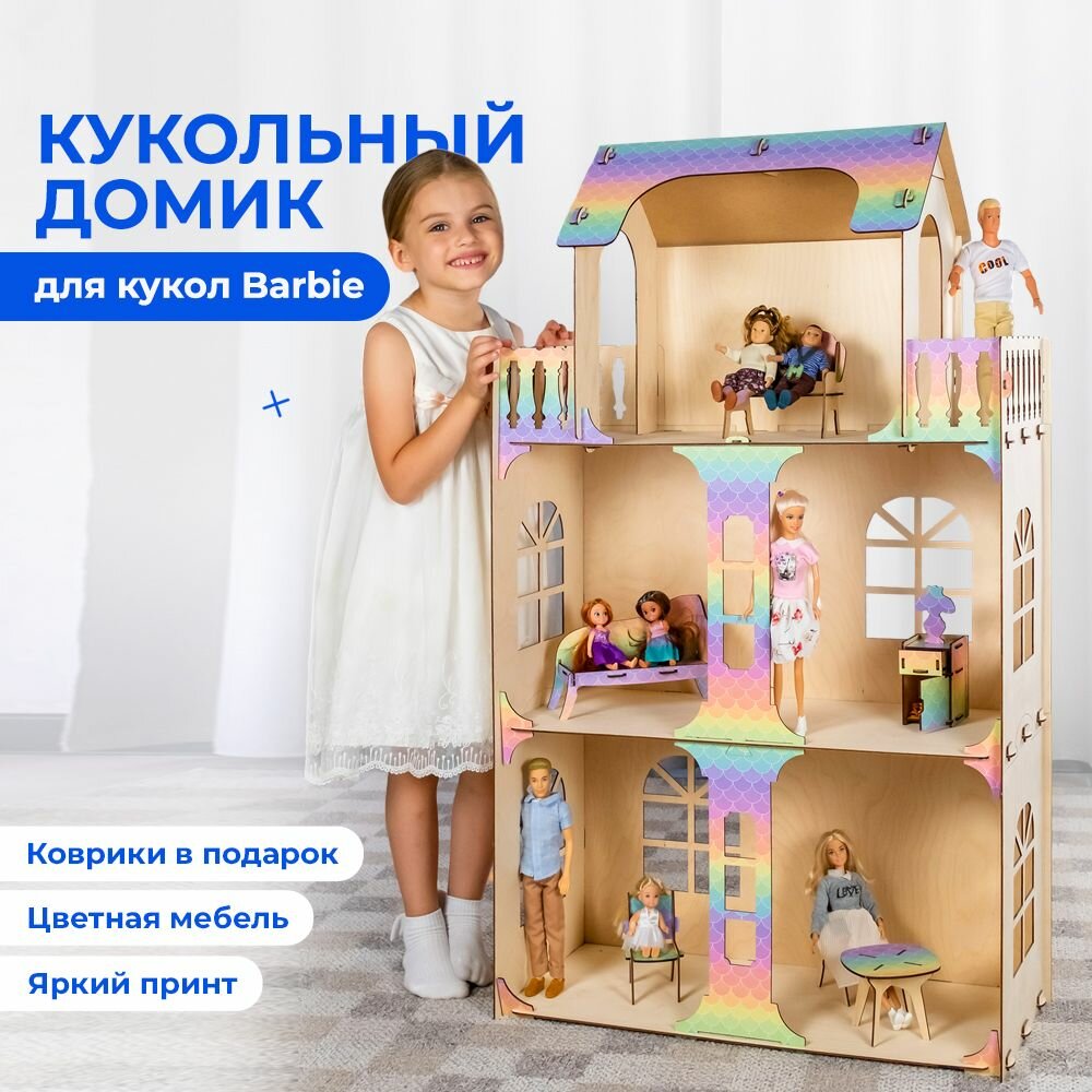 Отзывы на Кукольный домик с мебелью для кукол Барби и других до 30 см, Радуга