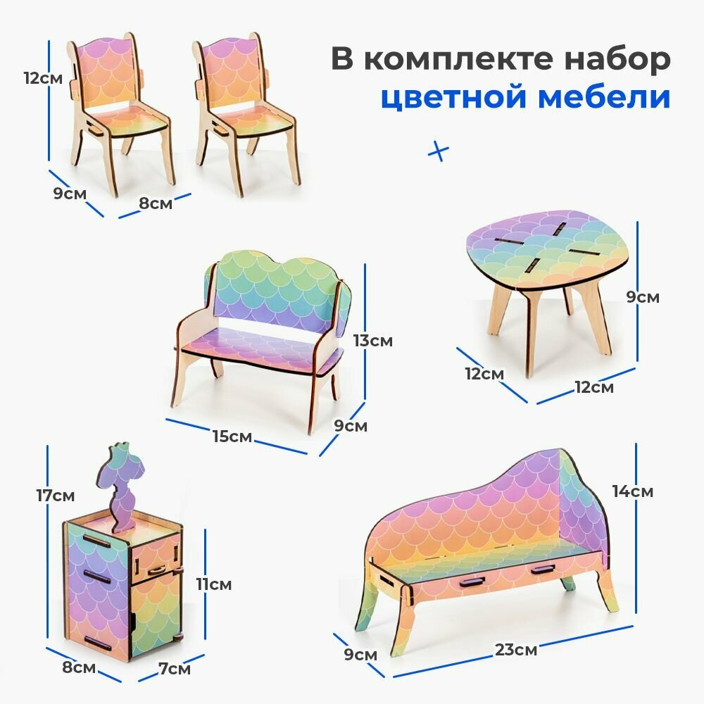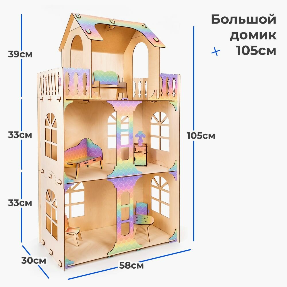 10 цен на Кукольный домик с мебелью для кукол Барби и других до 30 см, Радуга