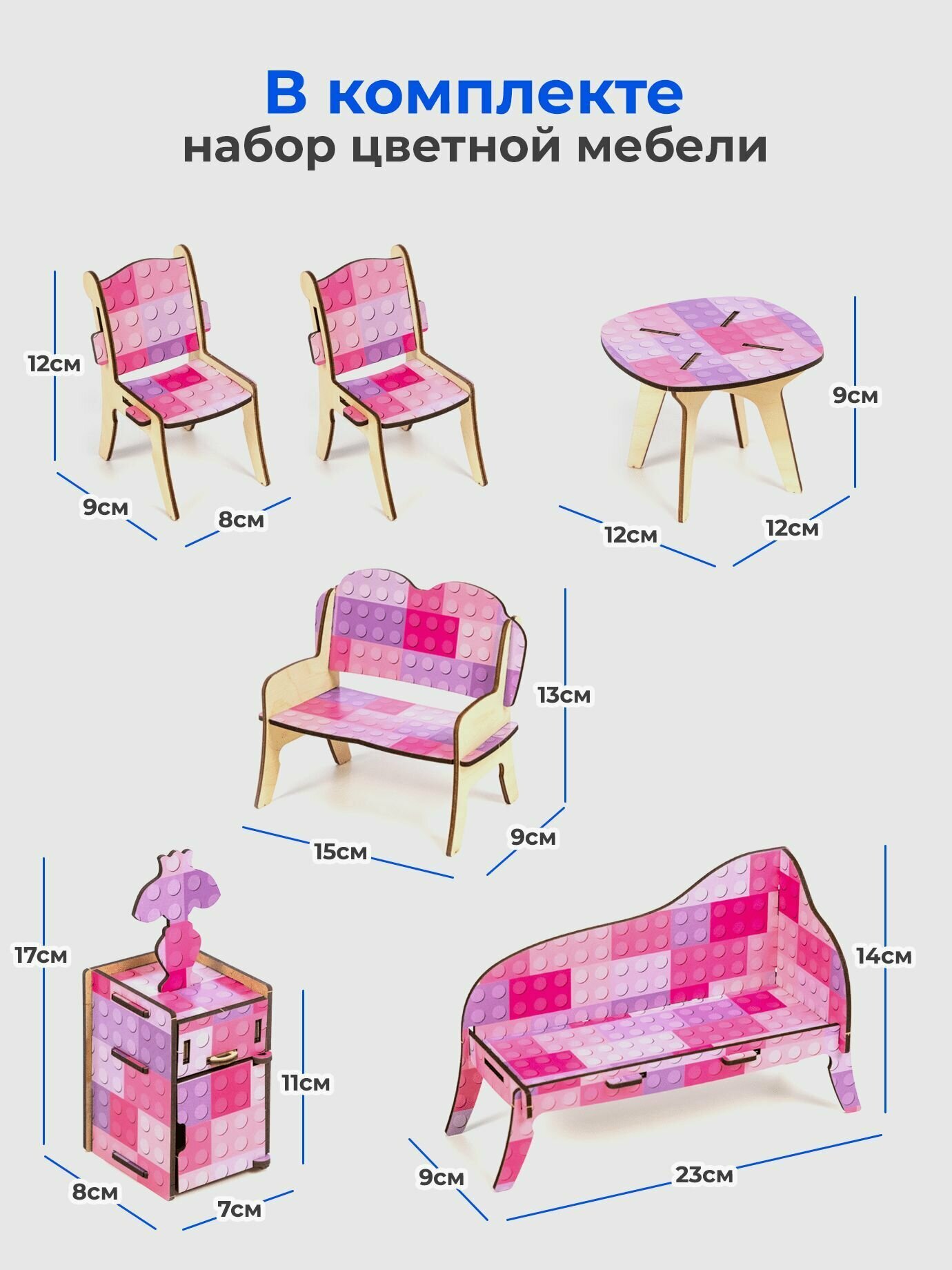 10 цен на Кукольный домик с мебелью для кукол Барби и других до 30 см Легого