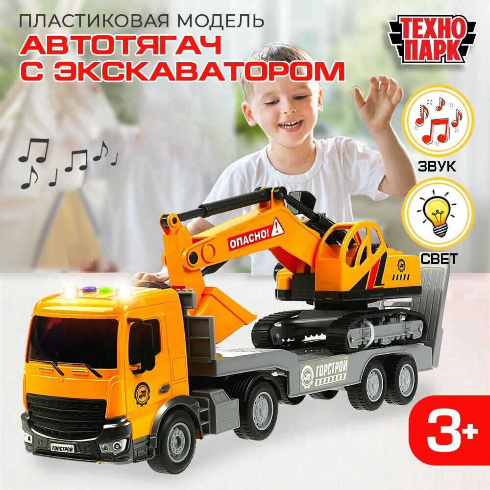 Отзывы на Машина пластик свет-звук автотягач с экскаватором, 37 см. Технопарк 2012A114-R