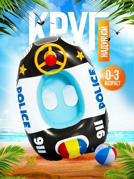 Отзывы на Детский надувной круг с ножками "Машинка-полиция", черно-белая"