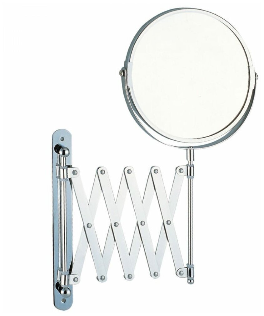 Зеркало настенное косметическое двустороннее на выдвижной штанге диаметр 17 см, 5 кратное увеличение. Поворот вокруг оси на 360 градусов