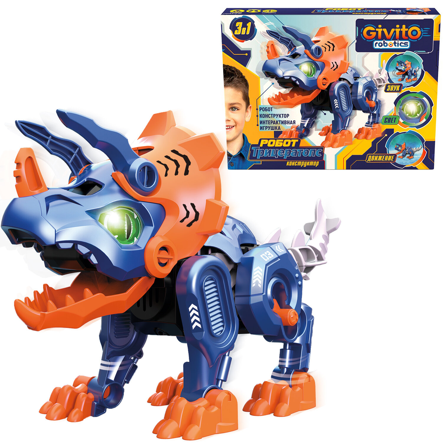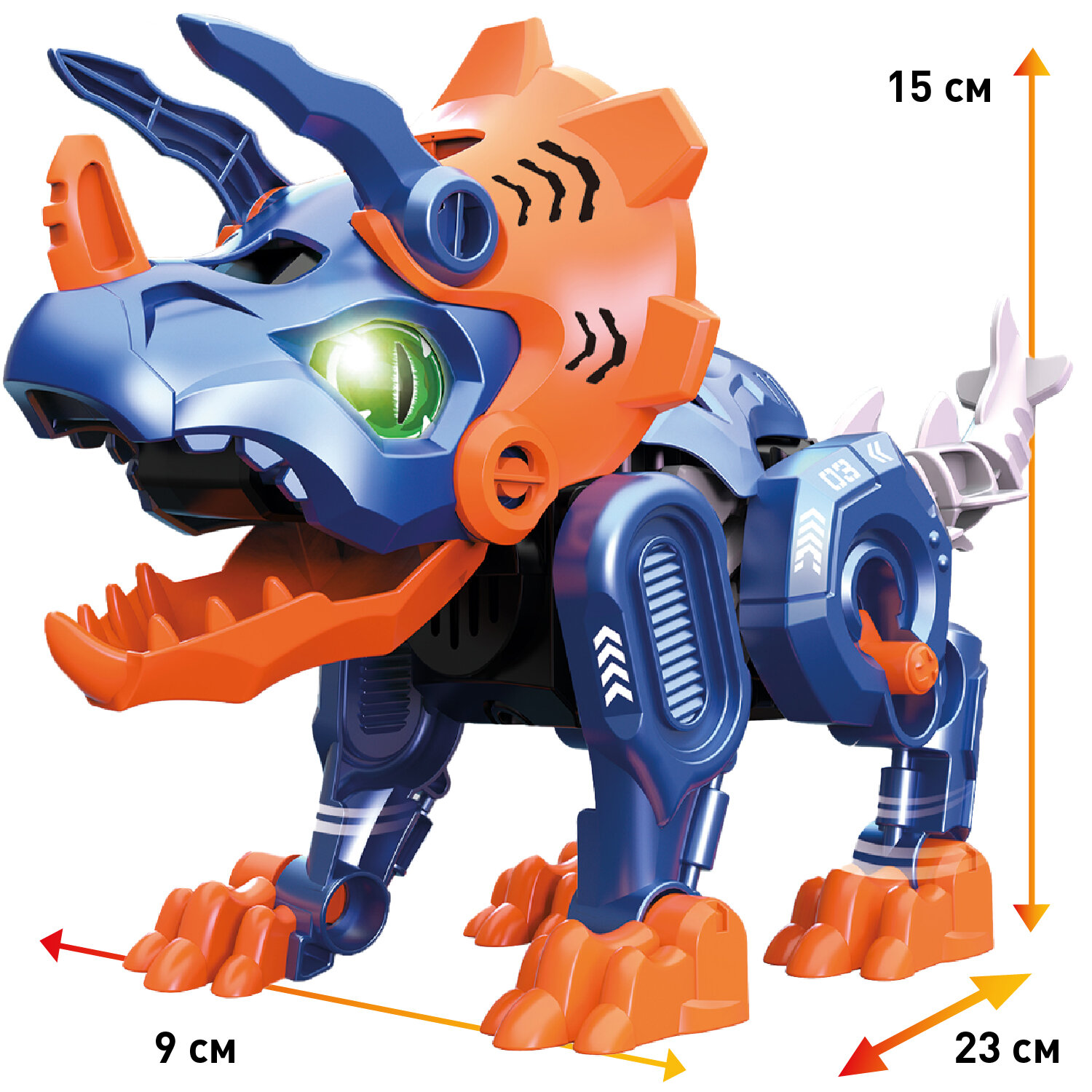 10 цен на Игрушка робот интерактивный "Динозавр Трицератопс" 3в1 (конструктор 27 деталей, свет, звук) Синий, Динозавр Трицератопс