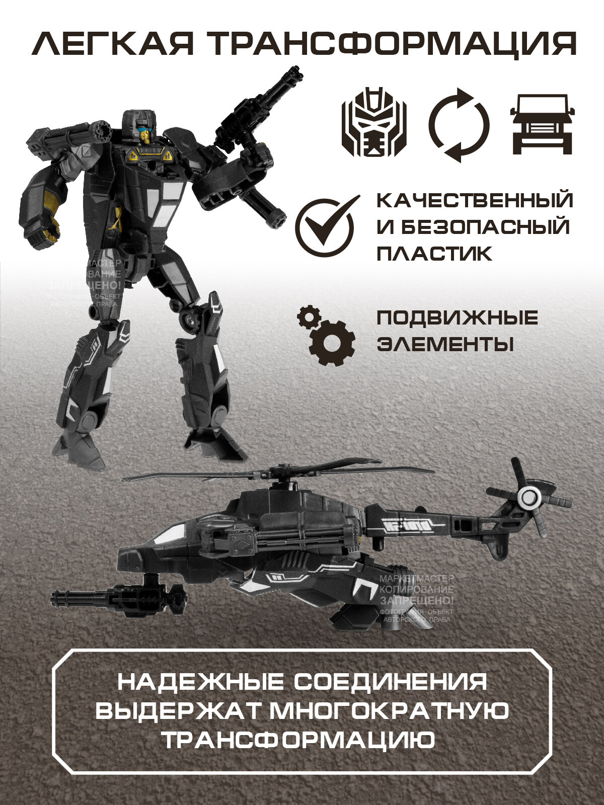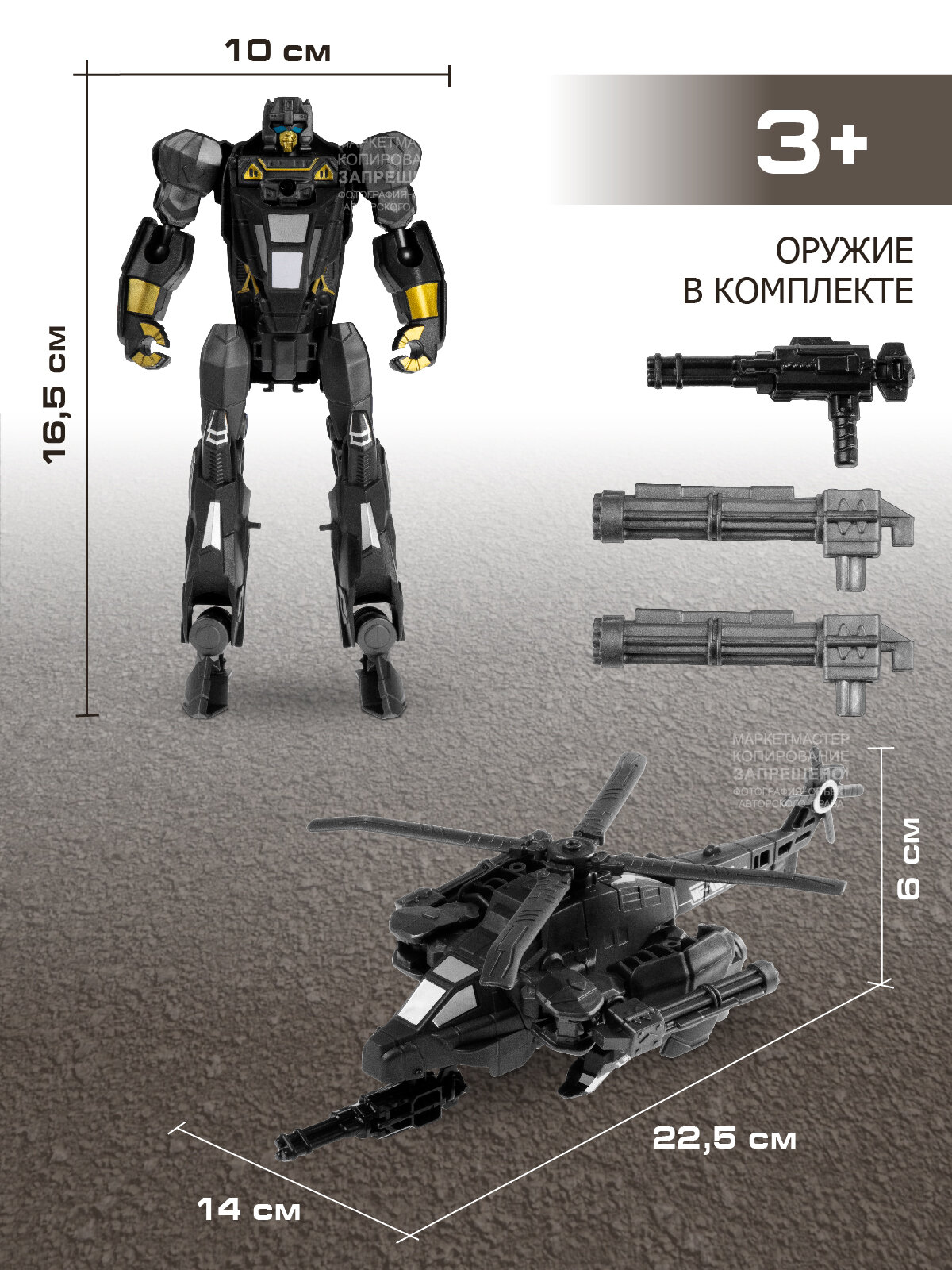 Трансформер-вертолет, с оружием, цвет темно-серый, в/к 17,2*6*22,3см JB0211857 933 ₽