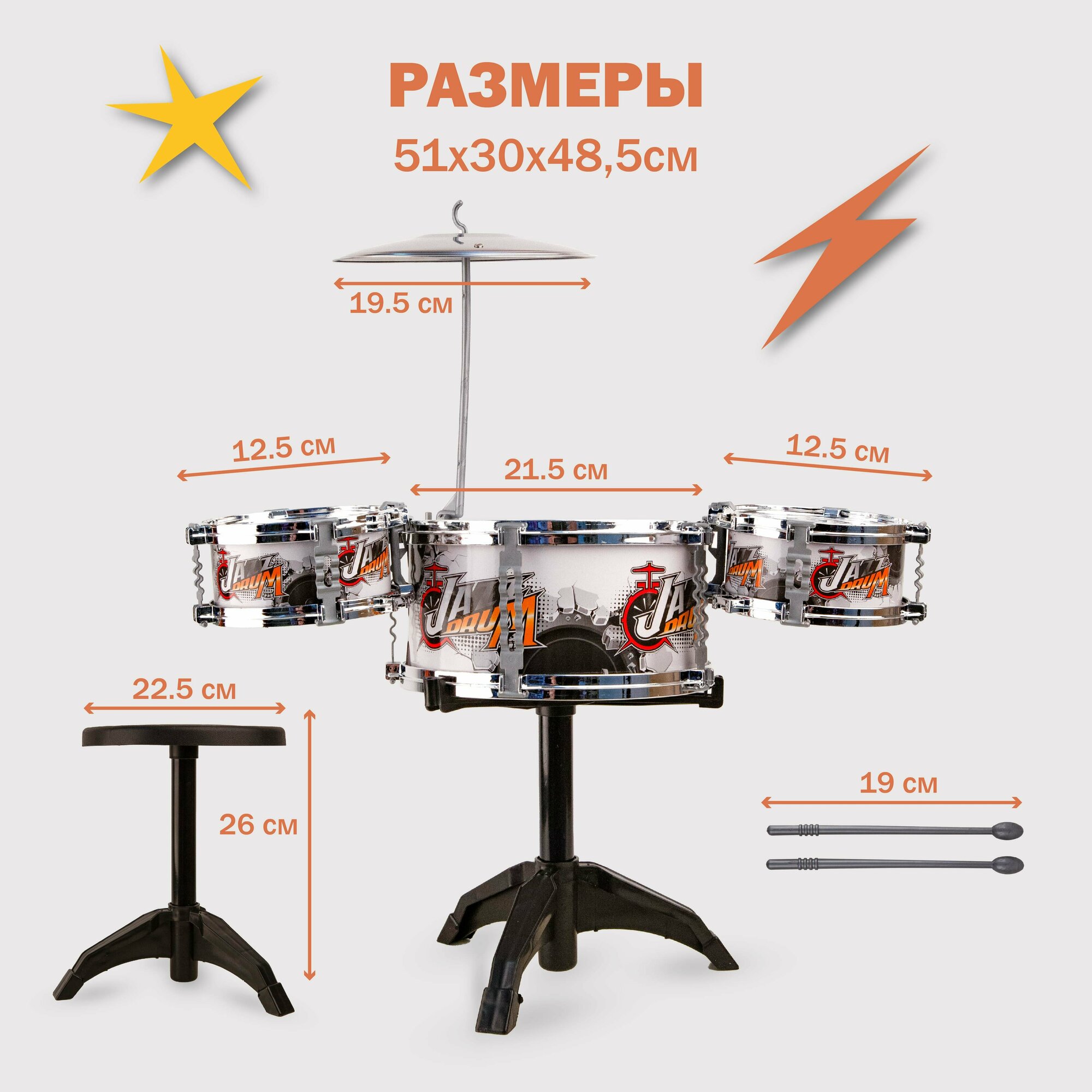 | Состав набора инструментов | барабан, тарелки |