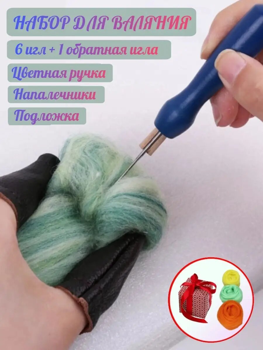 Отзывы на Мини набор с аксессуарами для валяния шерсти, 7 игл, подложка, напальчники, пробные моточки шерсти бренд "Кофанов"