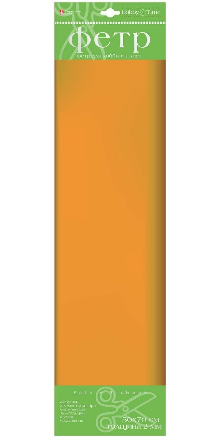 Фетр Hobby Time 2 мм, в листах 50х70СМ, ( оранжевый ) информация: