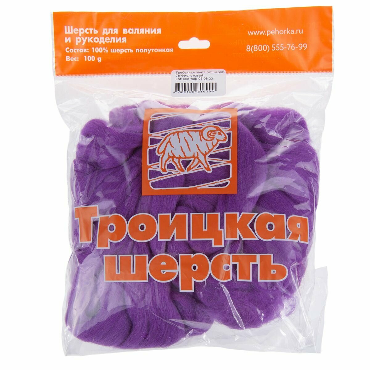 Шерсть для валяния полутонкая 100%, 100 г (78 фиолетовый) информация: