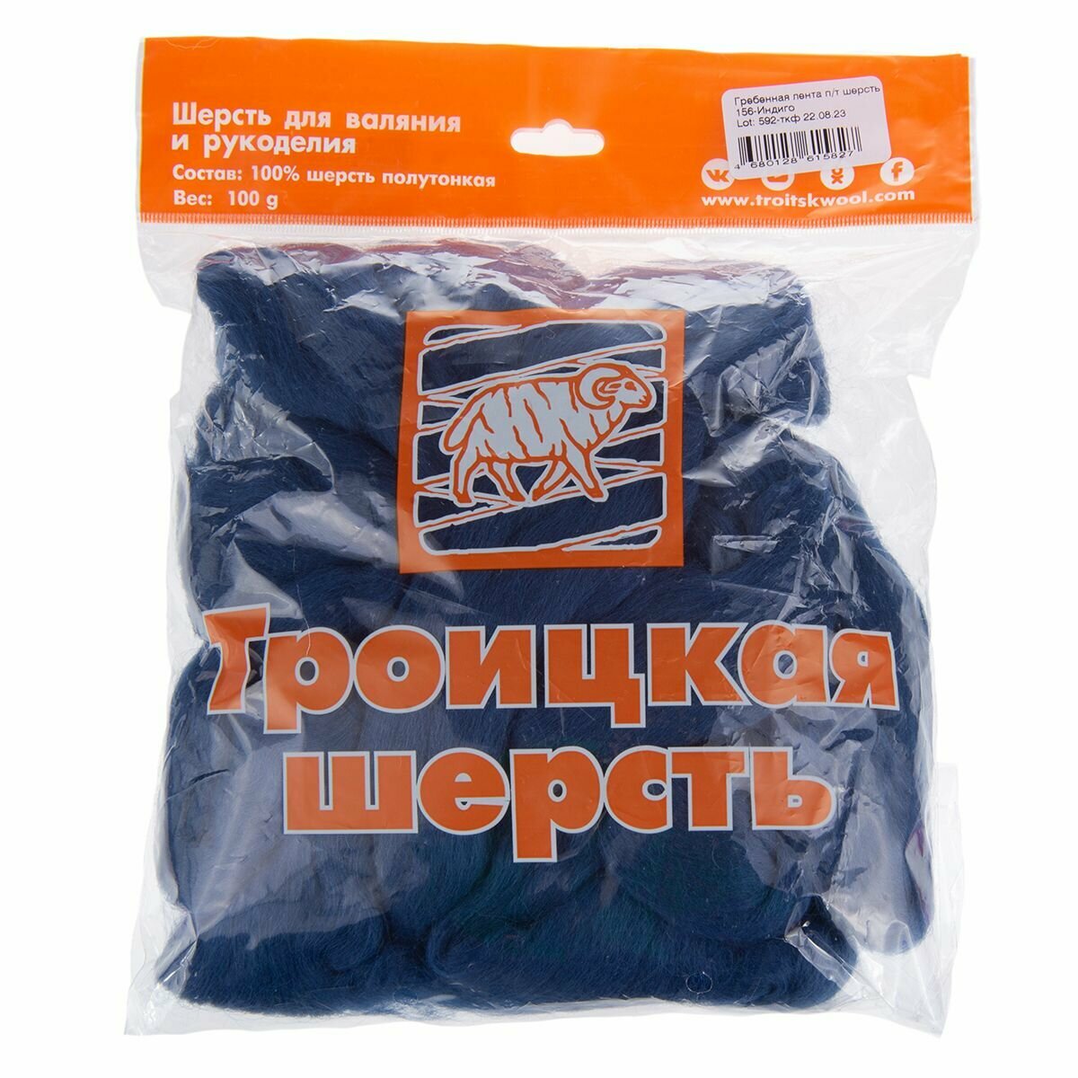 Шерсть для валяния Пряжа из Троицка полутонкая, гребенная лента, 100 г цвет 0156 индиго информация:
