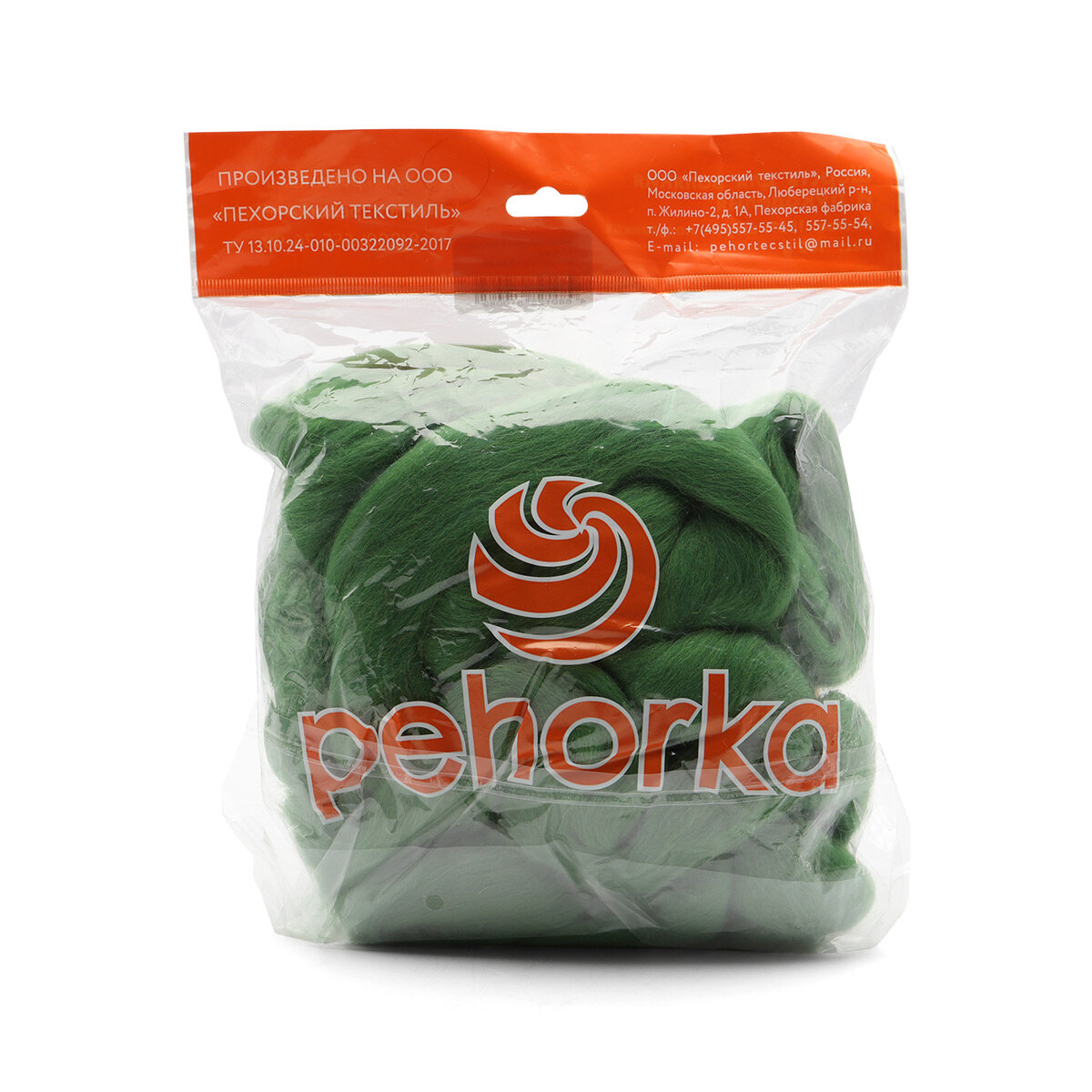 Шерсть для валяния Гребенная лента (нейлон) 50 г. (цвет: темный салат - 3577) / Пряжа из Троицка, артикул 3577