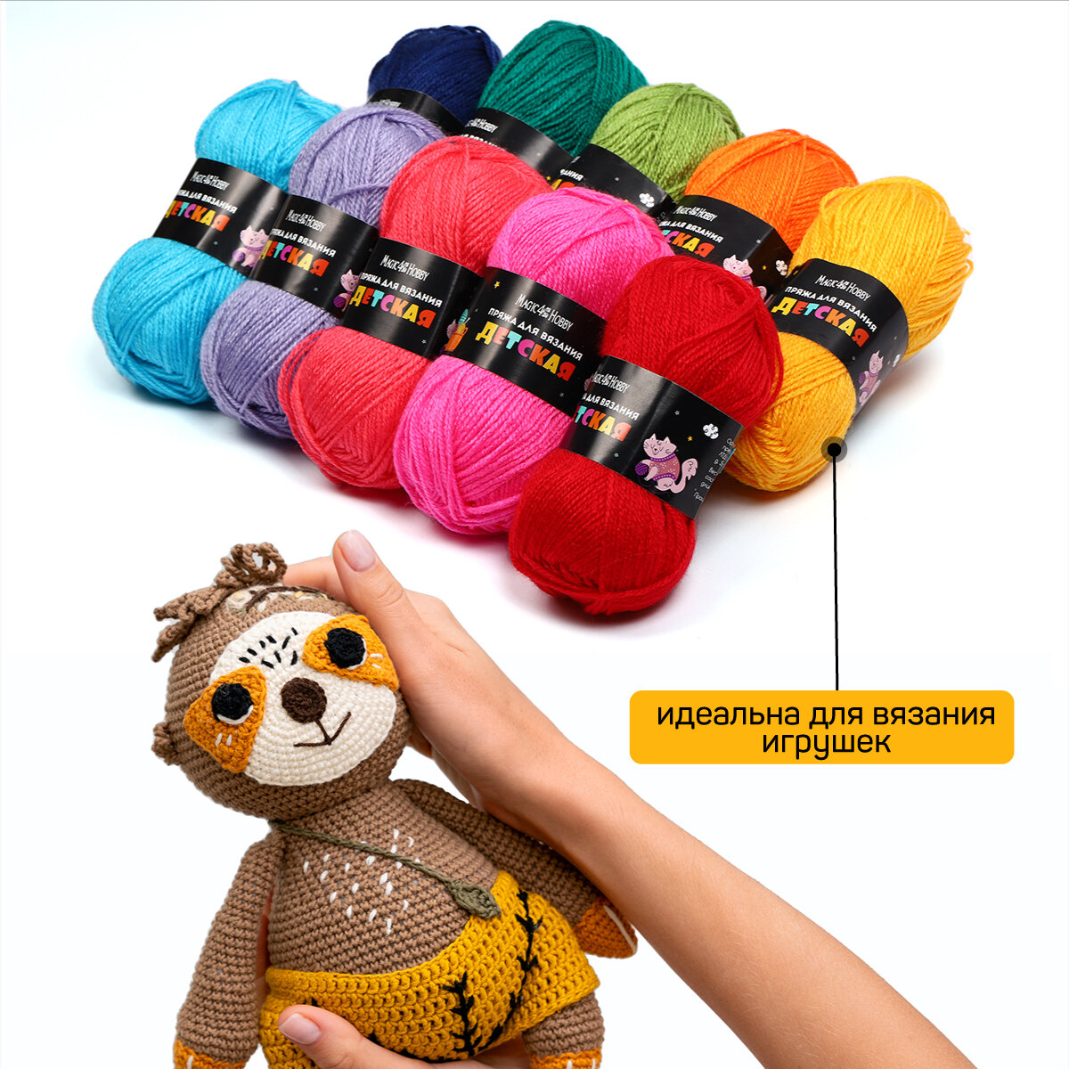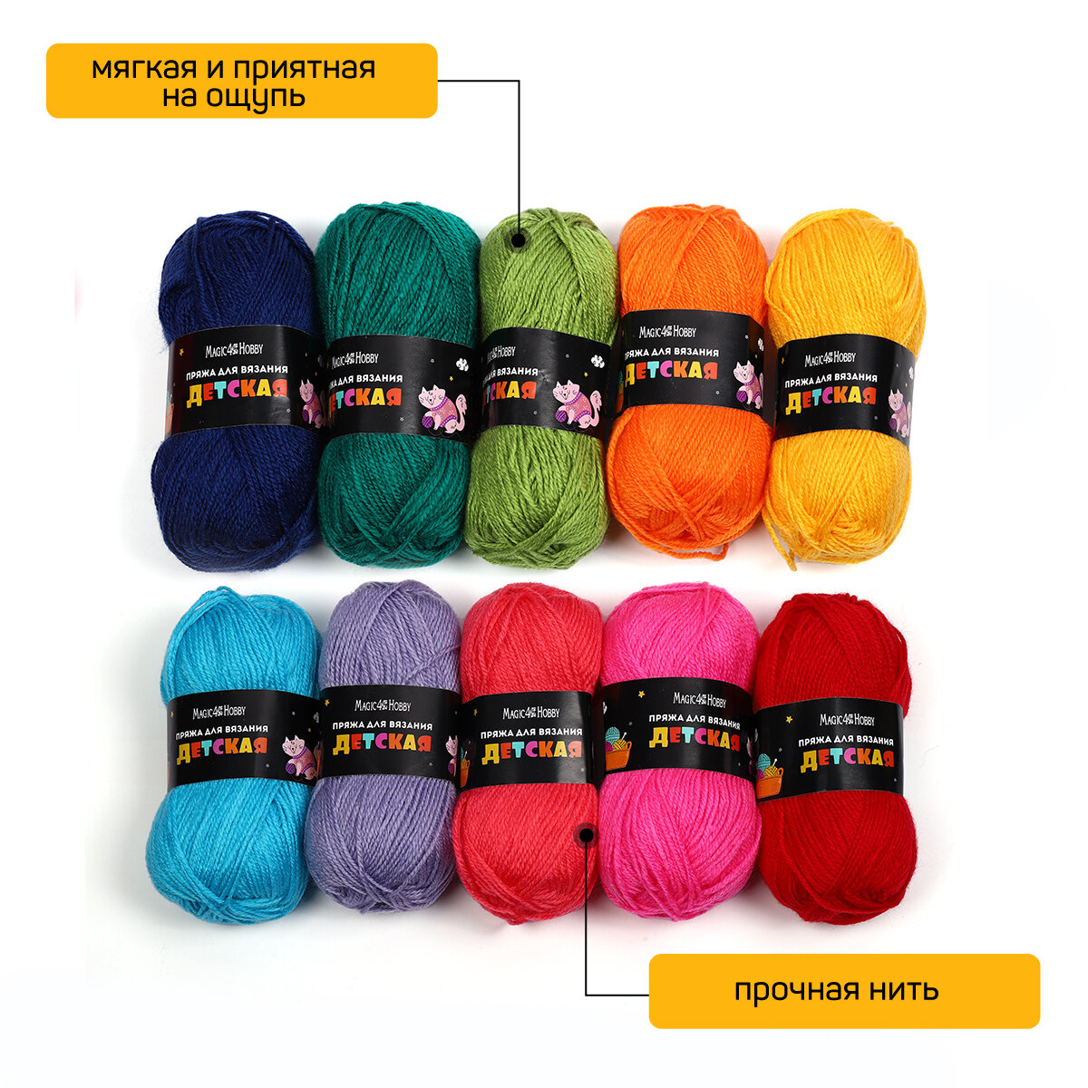 Набор пряжи для вязания Magic4Hobby Детская (100% акрил) 10х50 г/150м ассорти 1 информация:
