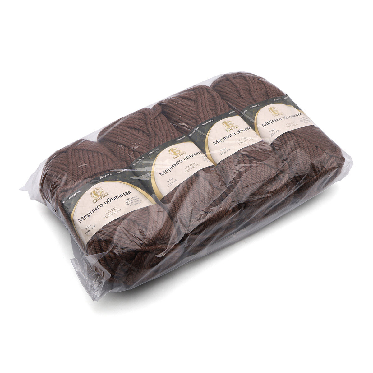 Пряжа для вязания Камтекс 'Меринго объемная' 150г, 90м (меринос, п/т шерсть акрил, лайкра) (121 коричневый), 4 шт 1 504 ₽