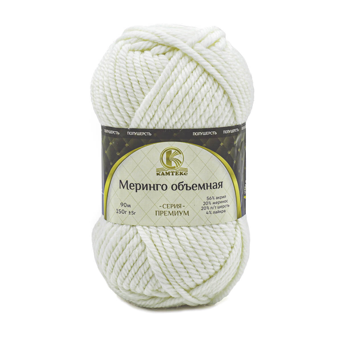 10 цен на Пряжа для вязания Камтекс 'Меринго объемная', 150г, 90м (20% меринос, 20% полутонкая шерсть, 56% акрил, 4% лайкра) (205 белый), 4 мотка