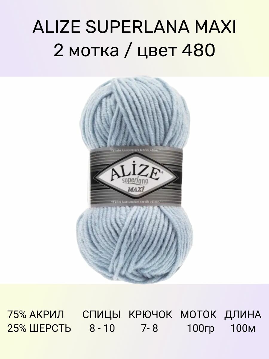 10 цен на Пряжа Alize Superlana MAXI - светло-голубой (480), 100г x 100м - 2 шт / Ализе Суперлана макси