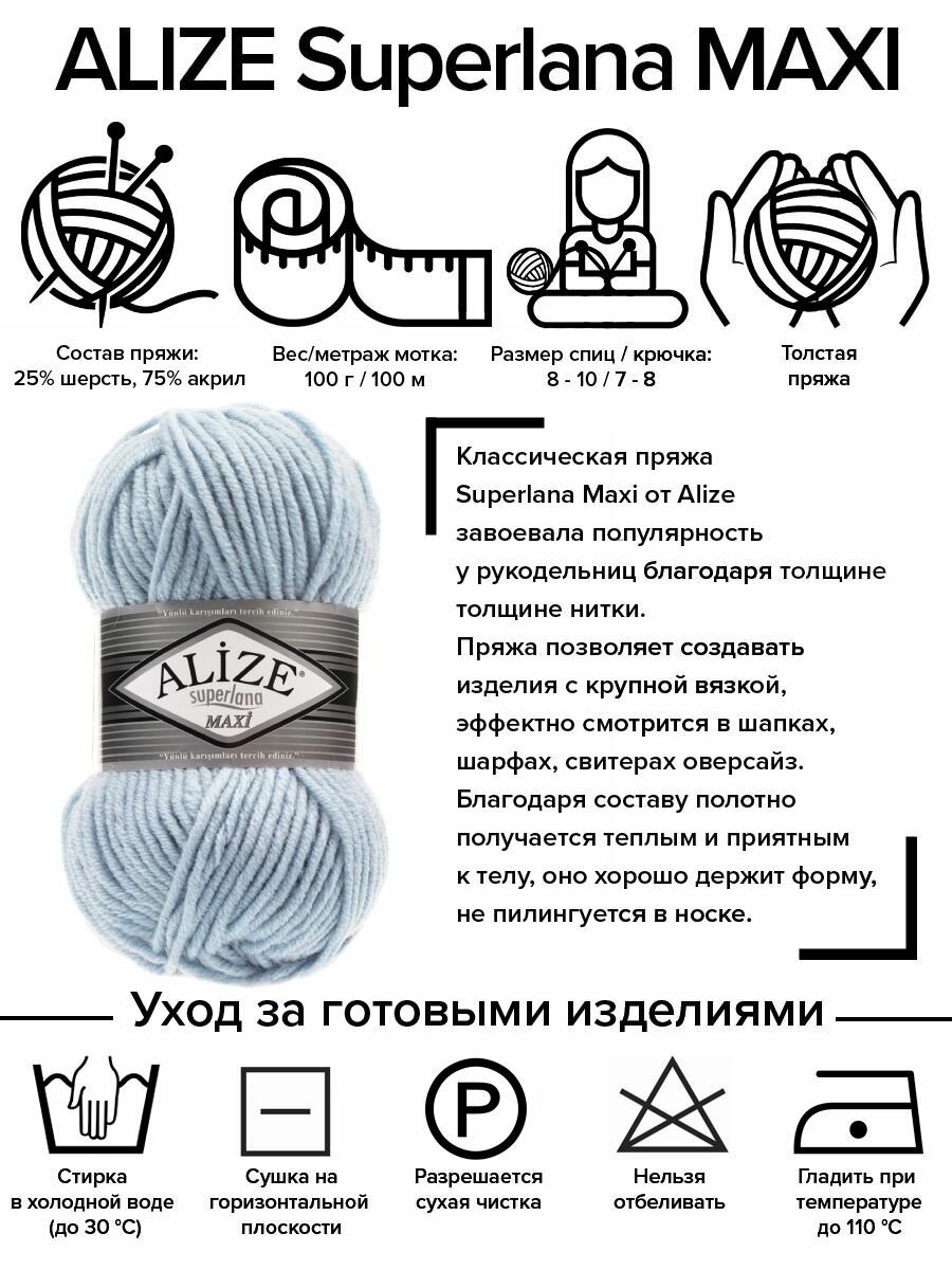 Пряжа Alize Superlana MAXI - светло-голубой (480), 100г x 100м - 2 шт / Ализе Суперлана макси информация:
