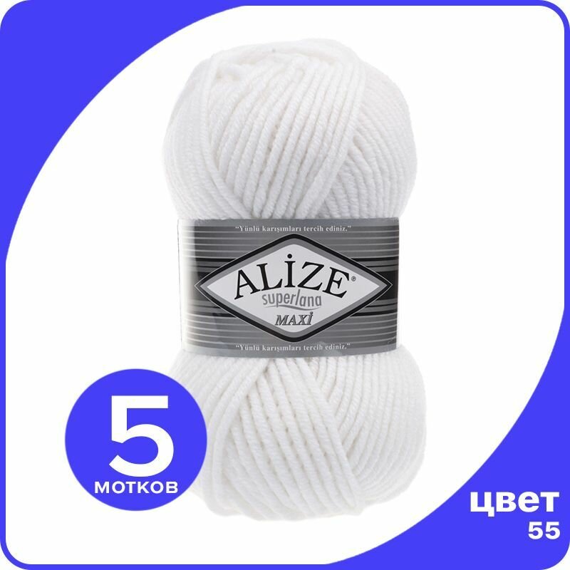 10 цен на Пряжа ALIZE Superlana Maxi 055 белый Ализе Суперлана Макси 5 мотков*100г*100м, шерсть 75%+акрил 25%