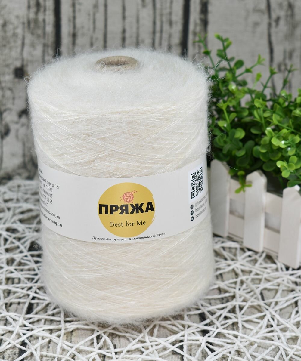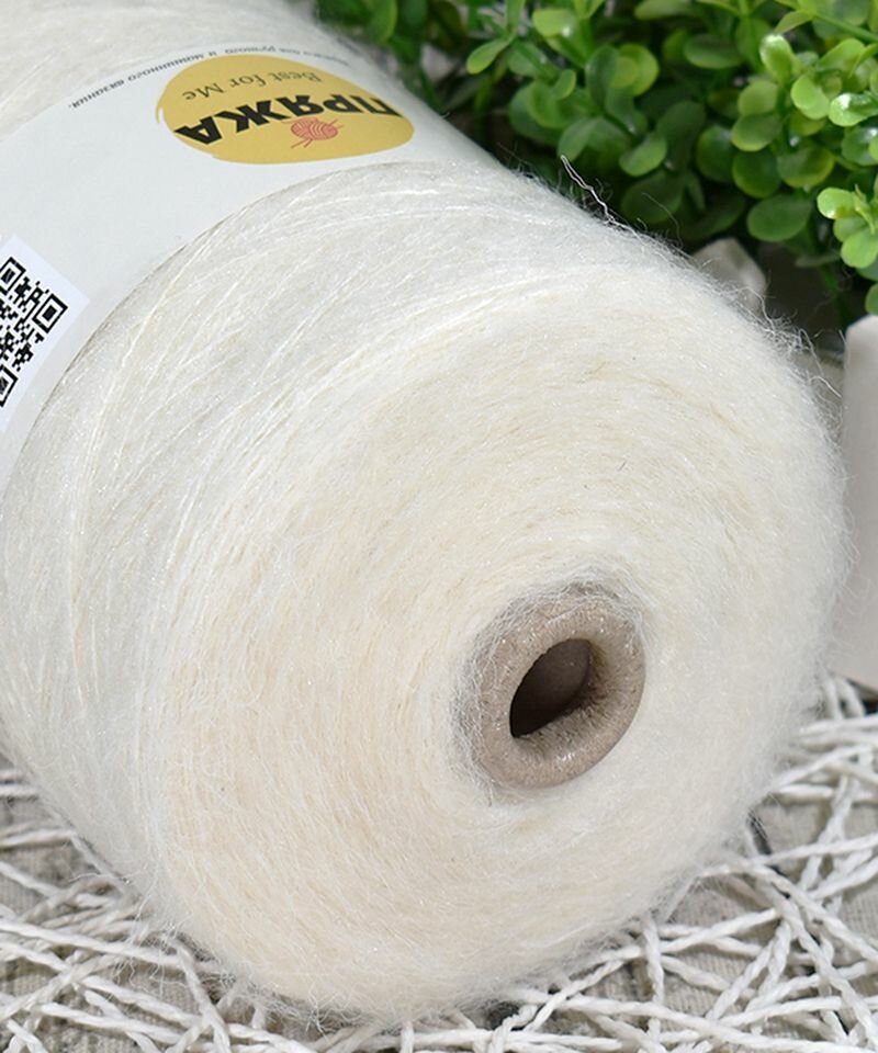10 цен на Пряжа на бобине FLUFFY ALPACA -18% альпака, 38% мохер.., 100гр./700м. цв.806 белый (вес 300гр.)