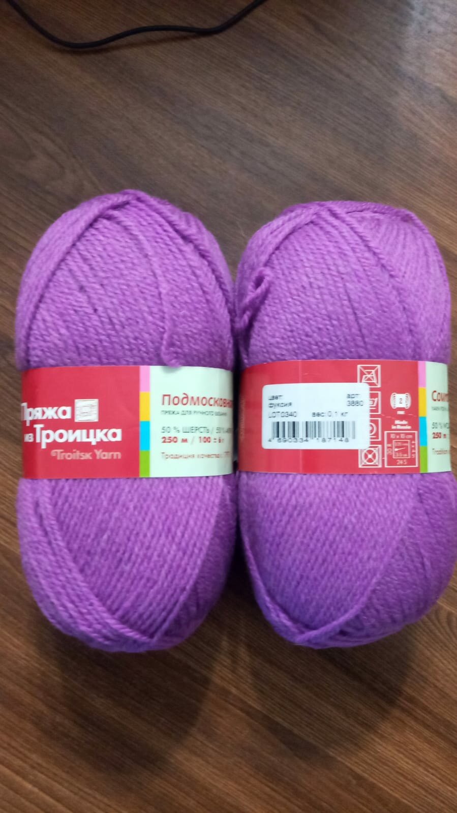 Отзывы на Пряжа Троицкая Подмосковная фуксия(3880), 50%шерсть/50%акрил, 250м, 100г, 2шт