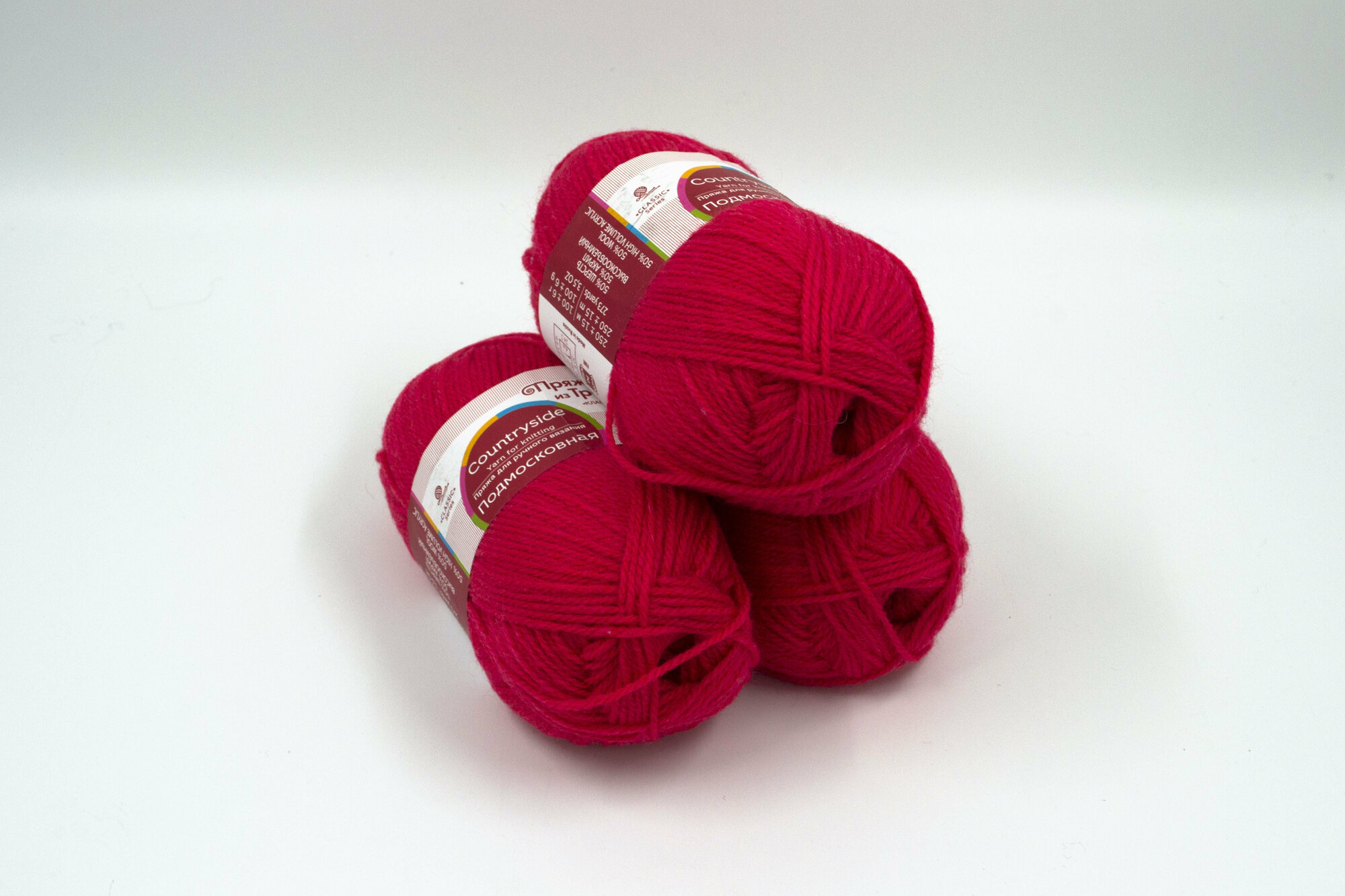 Пряжа для вязания из Троицка 'Подмосковная', 100г, 250м (50% шерсть, 50% акрил) (378 герань), 10 мотков 2 193 ₽