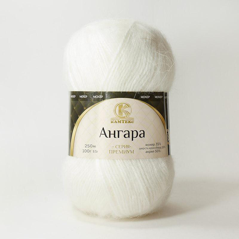 Пряжа Камтекс Ангара белый (205), 35%мохер/15%шерсть/50%акрил, 250м, 100г, 1шт информация:
