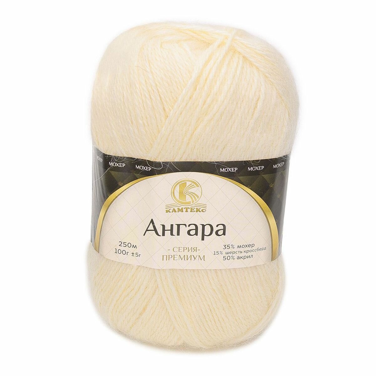 Пряжа Камтекс "Ангара", цвет: 188 - Топленое молоко, 2 шт., Мохер 35%, Шерсть 15%, Акрил 50%, 100 г. 250 м.