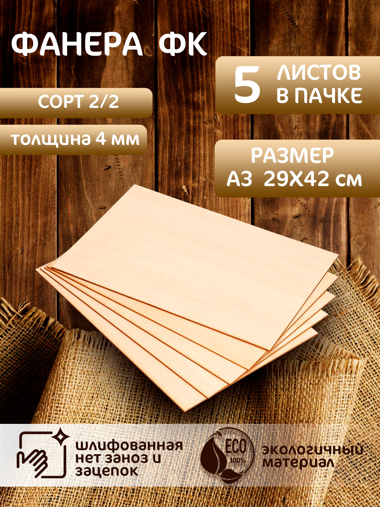 Фанера шлифованная ФК 2/2 А3 5 листов 4 мм информация: