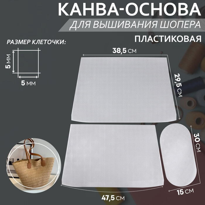 Канва-основа для вышивания корзины 47,5*29,5*38,5см/30*15см пластик белый АУ 10534458 информация: