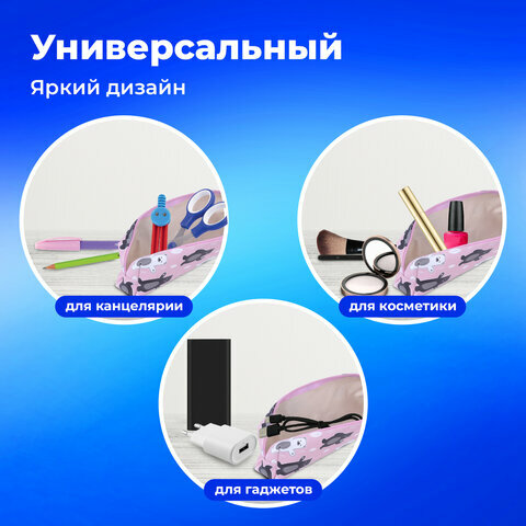 Пенал-косметичка школьный для ручек, карандашей для девочки/подростка Пифагор, мягкий, Unicorn, прямоугольный, 20х7х4 см, 229265 173 ₽