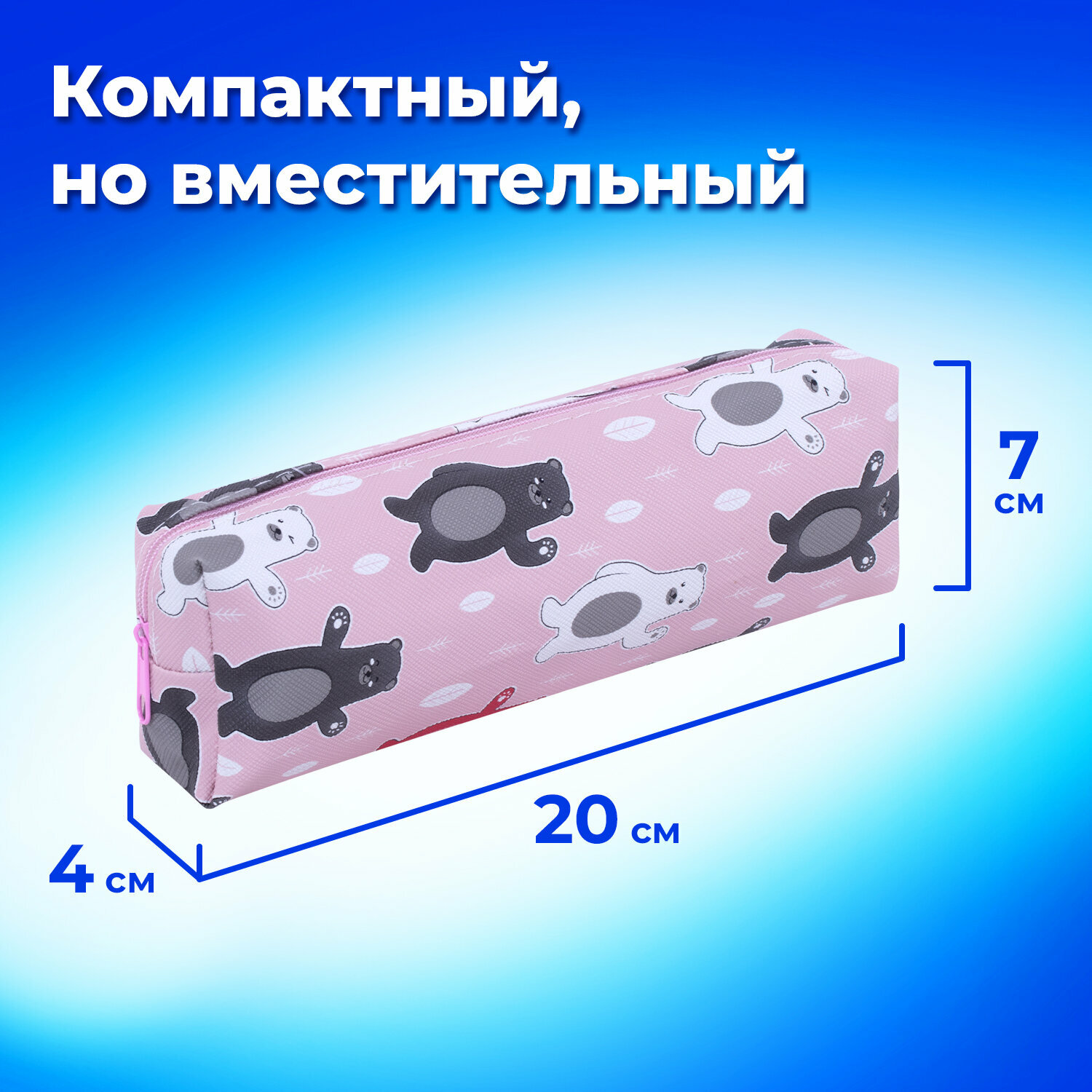 Отзывы на Пенал-косметичка школьный для ручек, карандашей для девочки/подростка Пифагор, мягкий, Bear, прямоугольный, 20х7х4 см, 229266