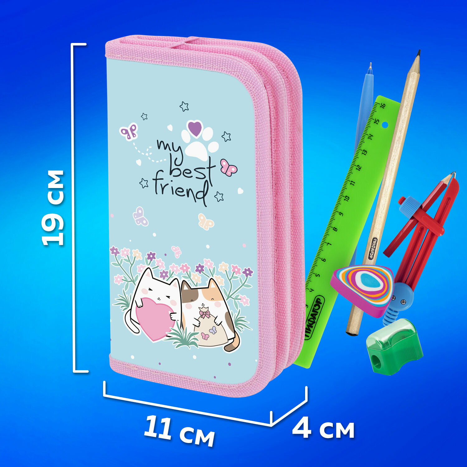 10 цен на Пенал Пифагор, 2 отделения, ламинированный картон, 19х11 см, Cat friends, 272247