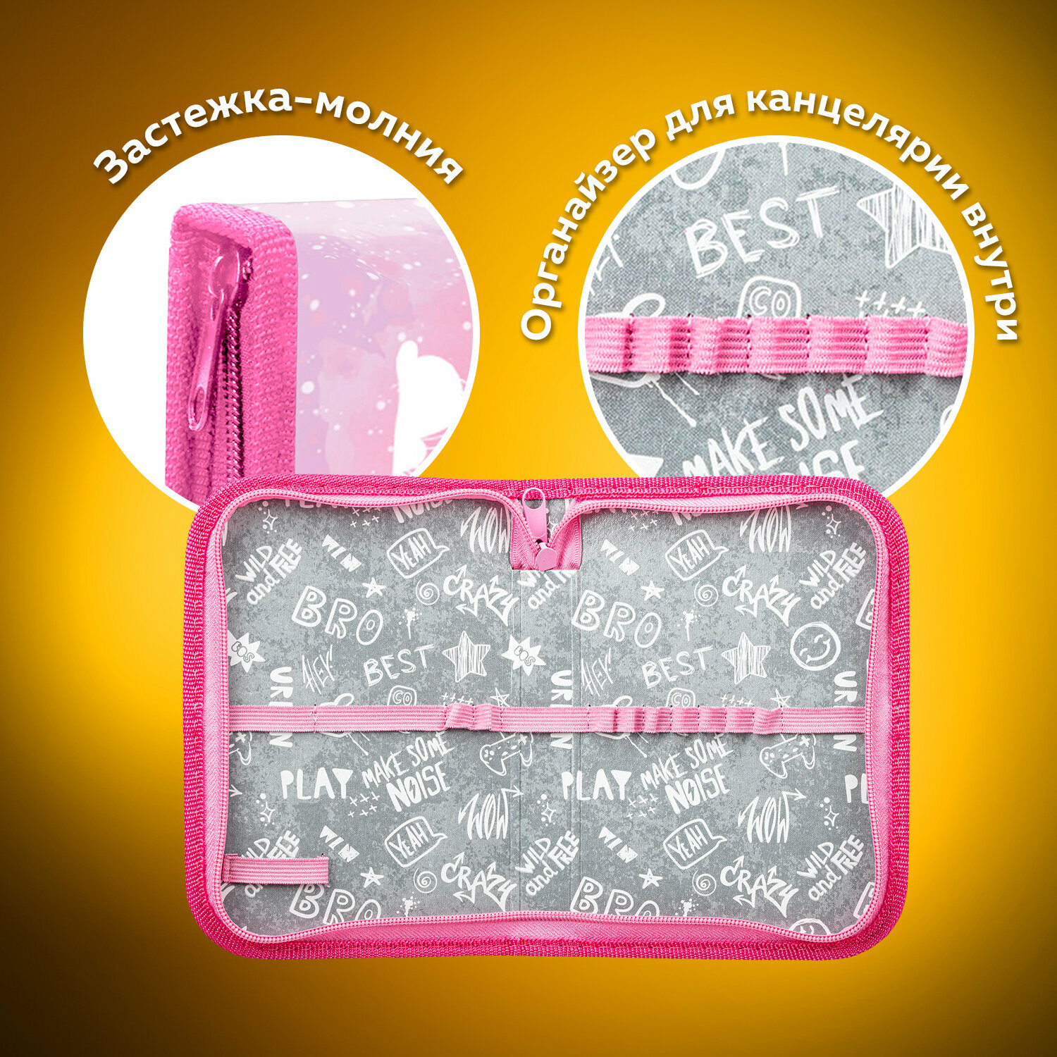 Пенал-косметичка школьный для ручек, карандашей для девочки/подростка Пифагор, мягкий, Unicorn, прямоугольный, 20х7х4 см, 229265 173 ₽
