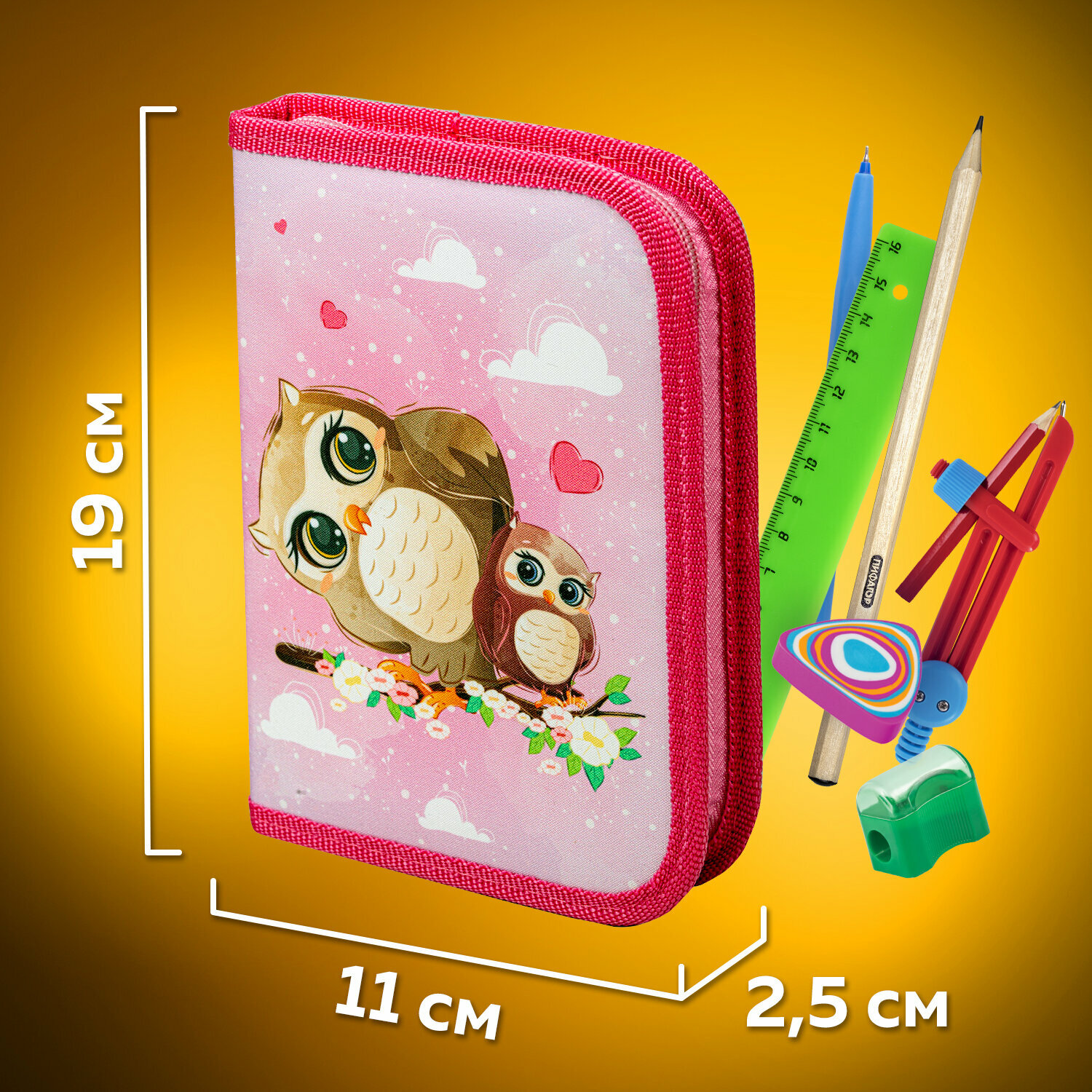 Пенал Пифагор, 1 отделение, полиэстер, 19х13 см, Cute owls, 271011 информация: