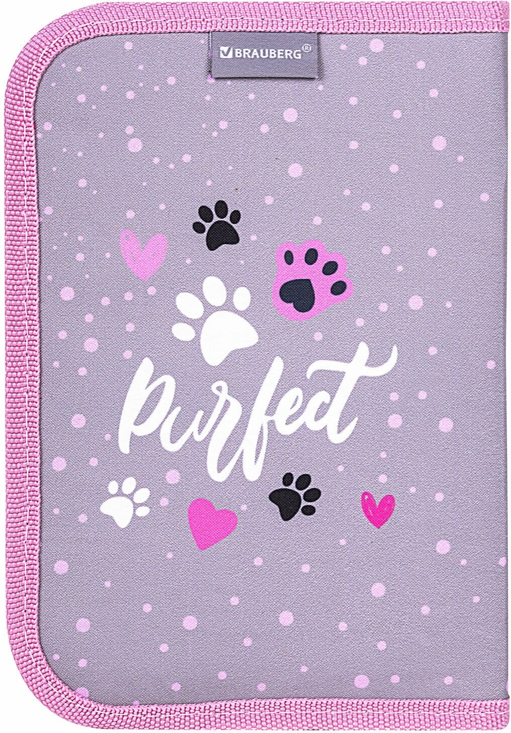 Пенал-косметичка школьный для ручек, карандашей Brauberg, полиэстер, 23х11х5см, фиолетовый, 271562 493 ₽