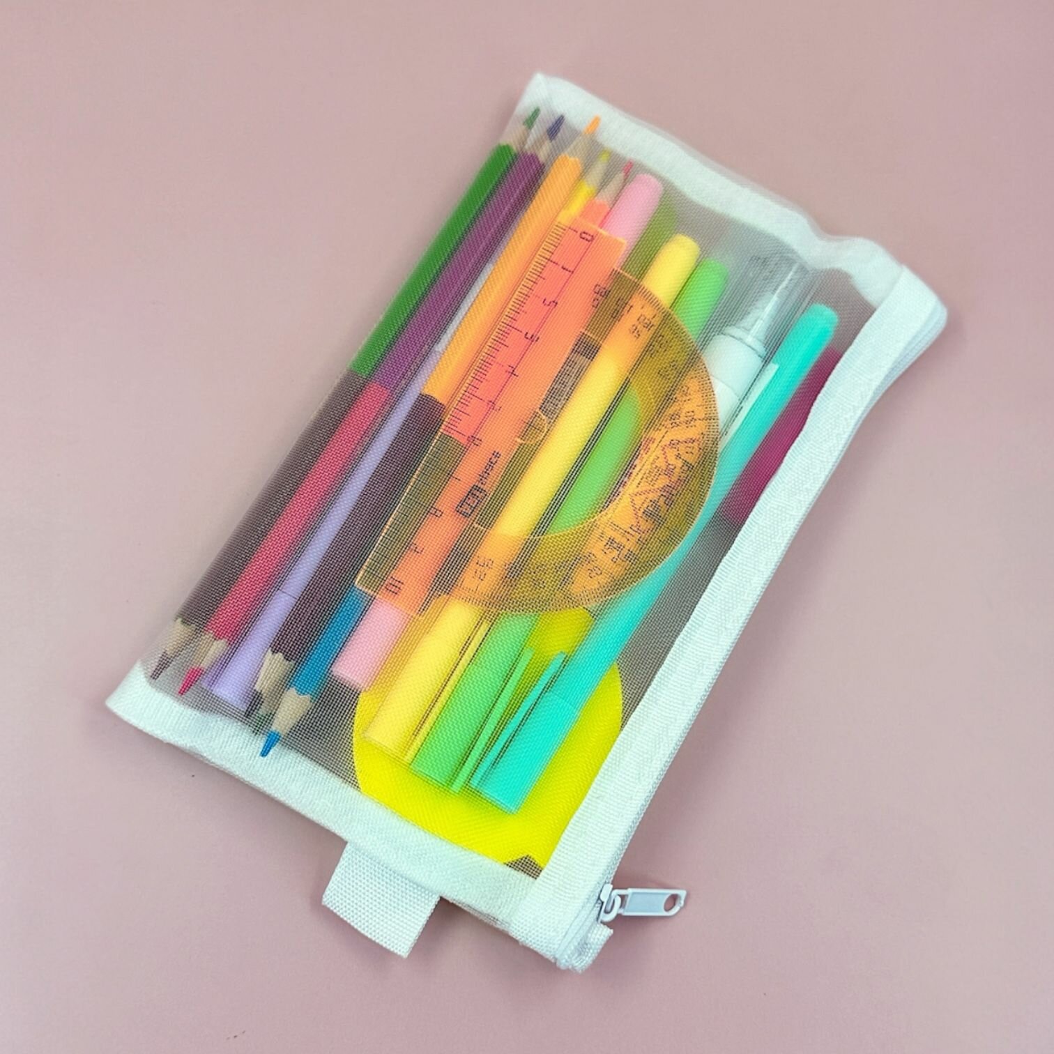 Отзывы на Прозрачный школьный пенал косметичка с двумя отделениями He Chooses, сетчатый из нейлона - Белый