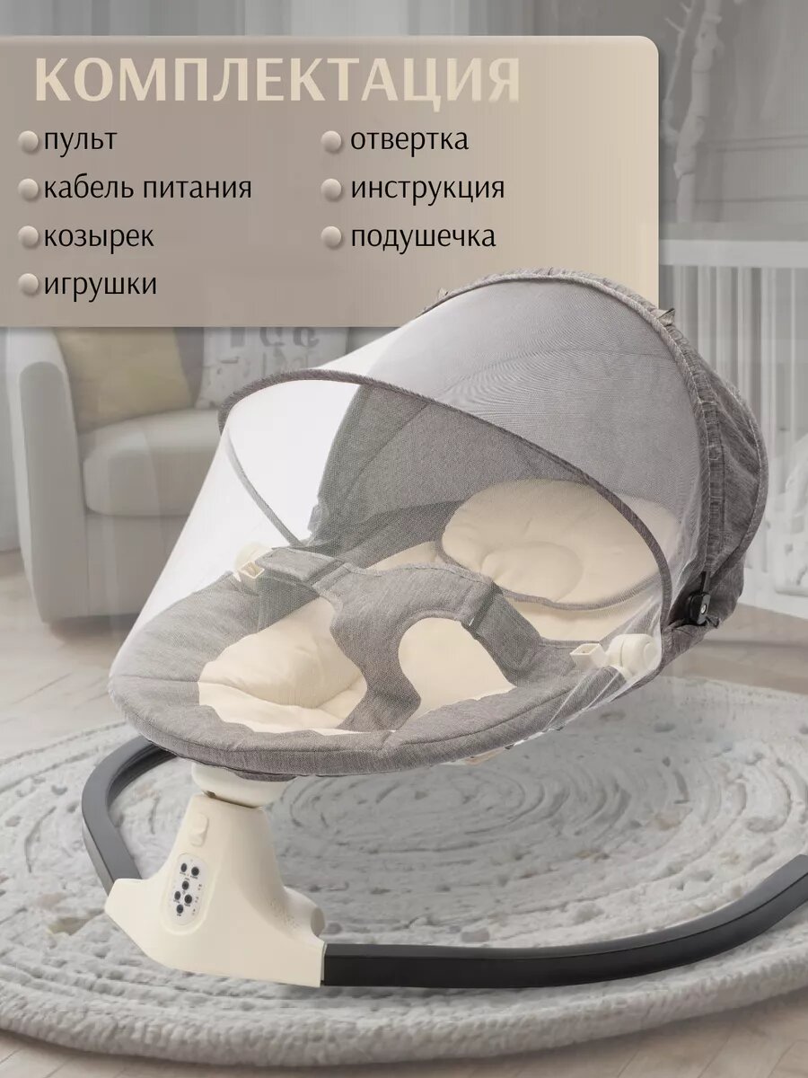 Электрокачели для новорожденного кресло качалка новогодние подарки, для малыша до 12 кг, с пультом управления, серый
