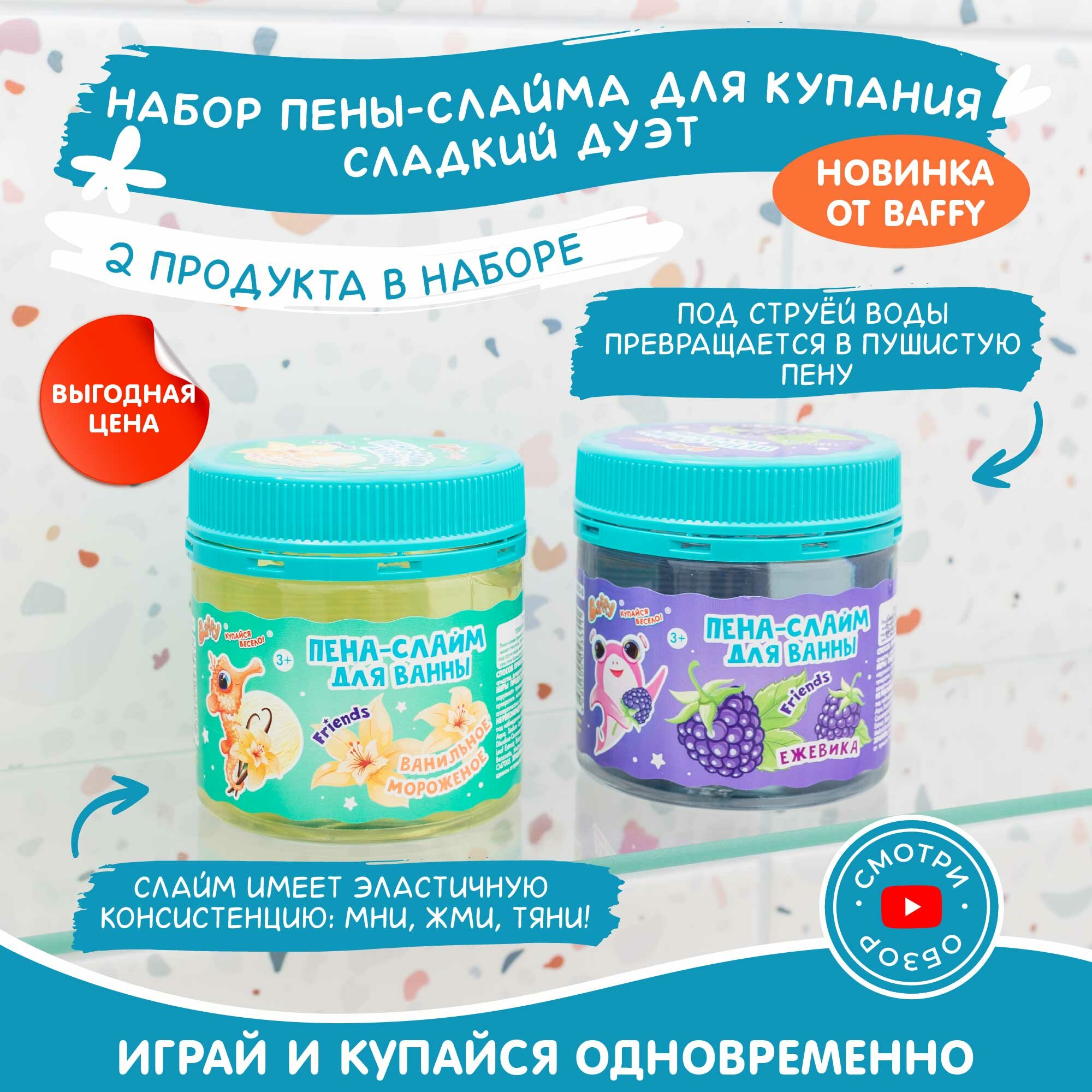 Пена слайм\лизун для ванны Baffy "Ежевика и ванильное мороженое", детская, 2 шт, гипоаллергенная, 150мл 419 ₽