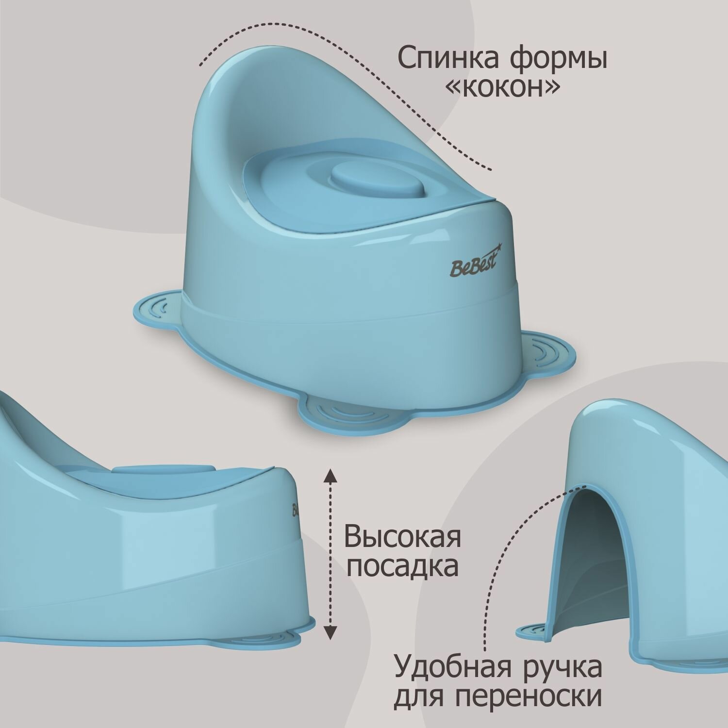 Горшок детский BeBest Glory, голубой с голубой крышкой информация:
