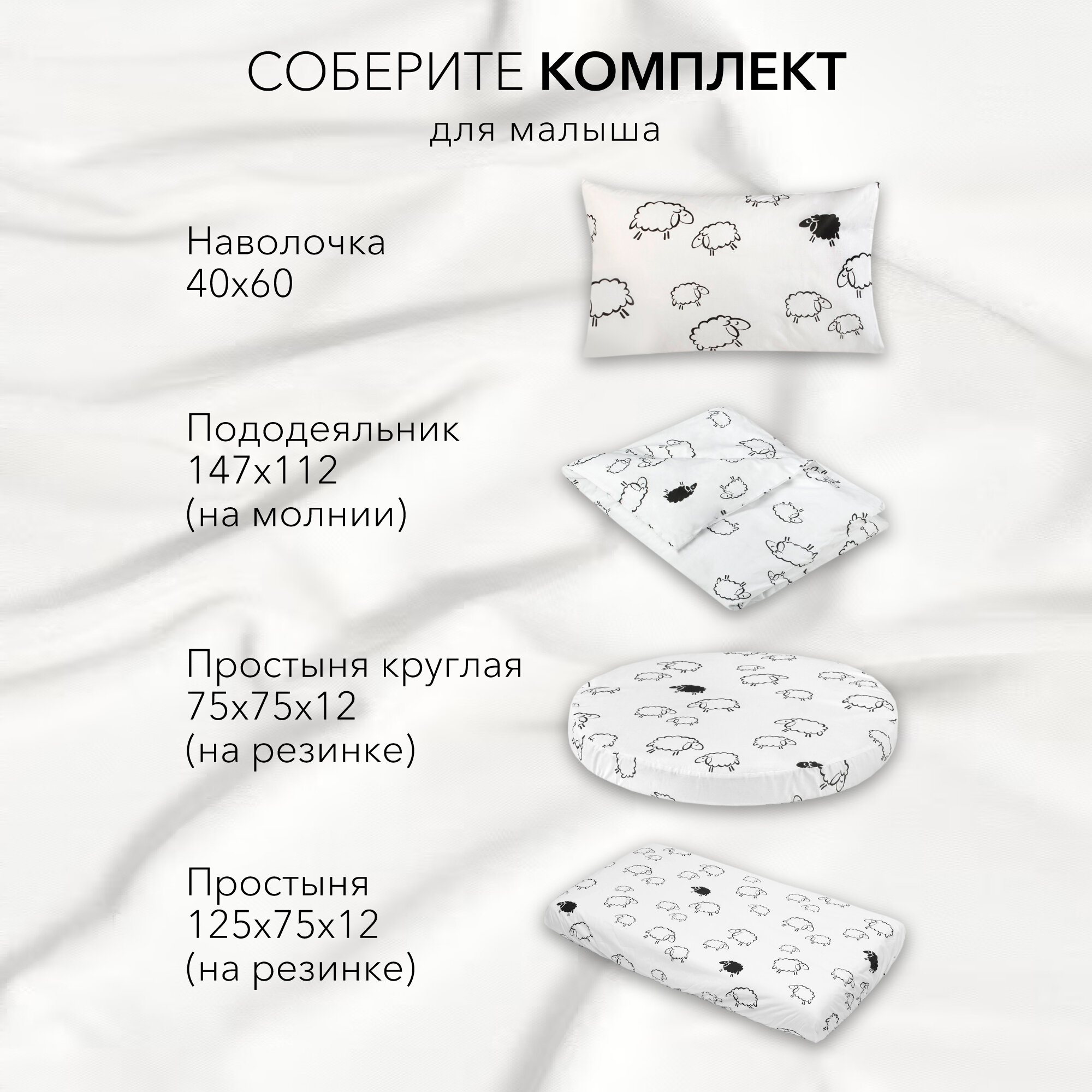 Комплект наволочек AmaroBaby 40х60 поплин (Овечки, белый)-2 шт. информация: