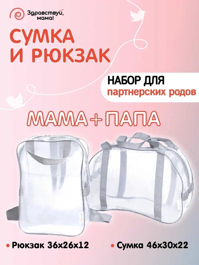Набор в роддом Сумка (46 х 30 х 22) и Рюкзак (36 х 26 х 12) для партнерских Родов "Здравствуй Мама" информация: