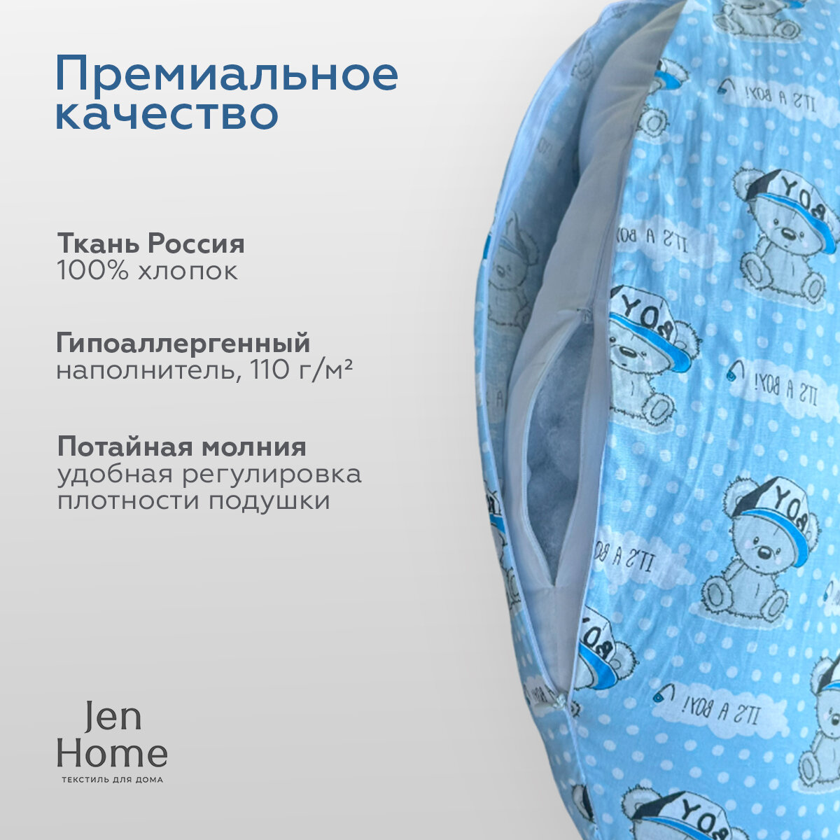 Отзывы на Подушка для беременных и кормящих "Бумеранг JenHome" 170х30 см Принт Мишки "It's a boy!"
